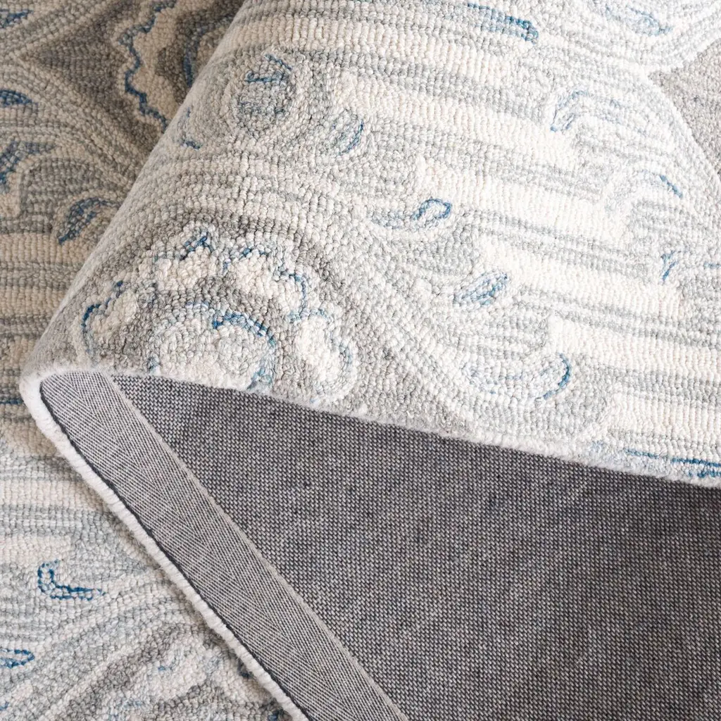 Elevate your home with the exquisite craftsmanship of this 4' x 6' hand-tufted area rug. Constructed from a luxurious blend of 85% wool and 15% cotton, this rug exemplifies durability and comfort underfoot. The small rectangular shape, measuring 3/8" in height, makes it a versatile addition to any space. This rug showcases a delicate floral pattern set against a light grey background, accented with serene blue hues that bring a calming presence to your room. The intricate details of the design reflect a blend of traditional and contemporary styles, ideal for enhancing the beauty of your floors. Made in India, this rug's handcrafted nature promises a unique piece for your decor. The floral style infuses a touch of nature into your home, creating a warm and inviting atmosphere. Place this charming rug in your living room, bedroom, or dining area and let its elegance and sophistication transform your interior space.