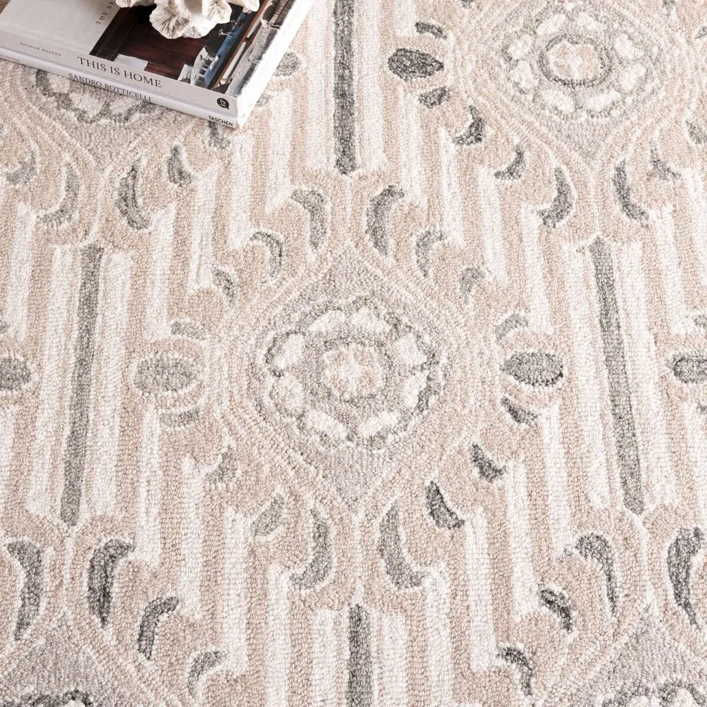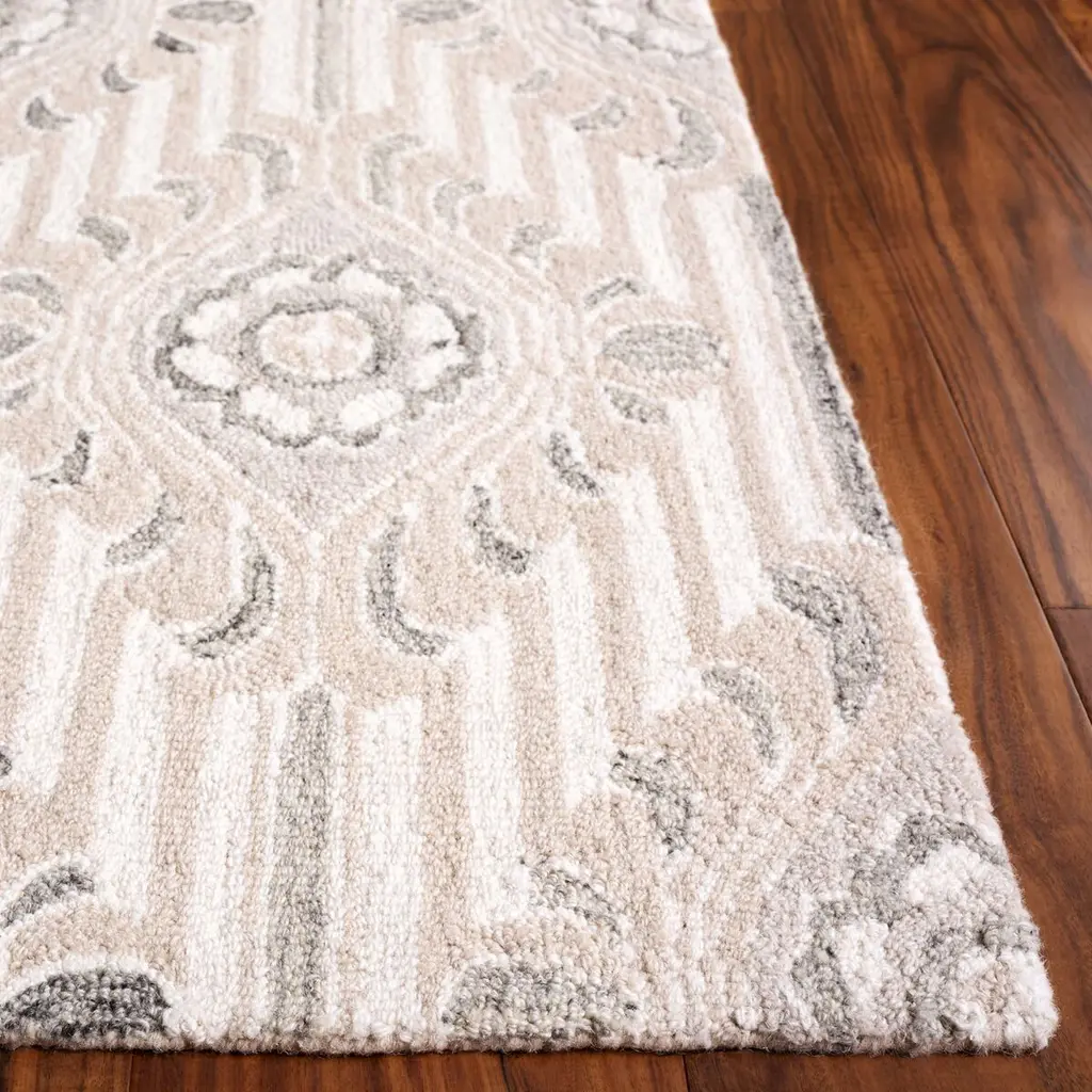 Elevate your home with the exquisite craftsmanship of this 4' x 6' hand-tufted area rug. Constructed from a luxurious blend of 85% wool and 15% cotton, this rug exemplifies durability and comfort underfoot. The small rectangular shape, measuring 3/8" in height, makes it a versatile addition to any space. This rug showcases a delicate floral pattern set against a light grey background, accented with serene blue hues that bring a calming presence to your room. The intricate details of the design reflect a blend of traditional and contemporary styles, ideal for enhancing the beauty of your floors. Made in India, this rug's handcrafted nature promises a unique piece for your decor. The floral style infuses a touch of nature into your home, creating a warm and inviting atmosphere. Place this charming rug in your living room, bedroom, or dining area and let its elegance and sophistication transform your interior space.