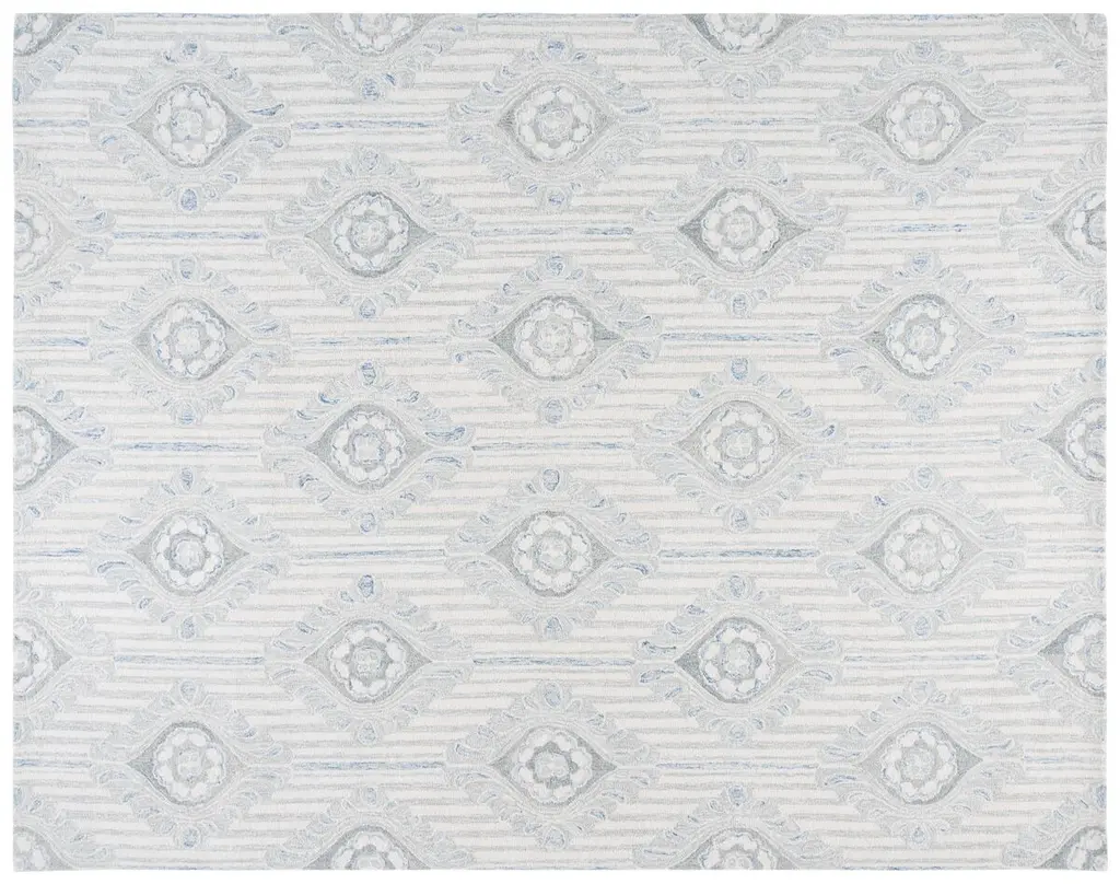 Elevate your home with the exquisite craftsmanship of this 4' x 6' hand-tufted area rug. Constructed from a luxurious blend of 85% wool and 15% cotton, this rug exemplifies durability and comfort underfoot. The small rectangular shape, measuring 3/8" in height, makes it a versatile addition to any space. This rug showcases a delicate floral pattern set against a light grey background, accented with serene blue hues that bring a calming presence to your room. The intricate details of the design reflect a blend of traditional and contemporary styles, ideal for enhancing the beauty of your floors. Made in India, this rug's handcrafted nature promises a unique piece for your decor. The floral style infuses a touch of nature into your home, creating a warm and inviting atmosphere. Place this charming rug in your living room, bedroom, or dining area and let its elegance and sophistication transform your interior space.
