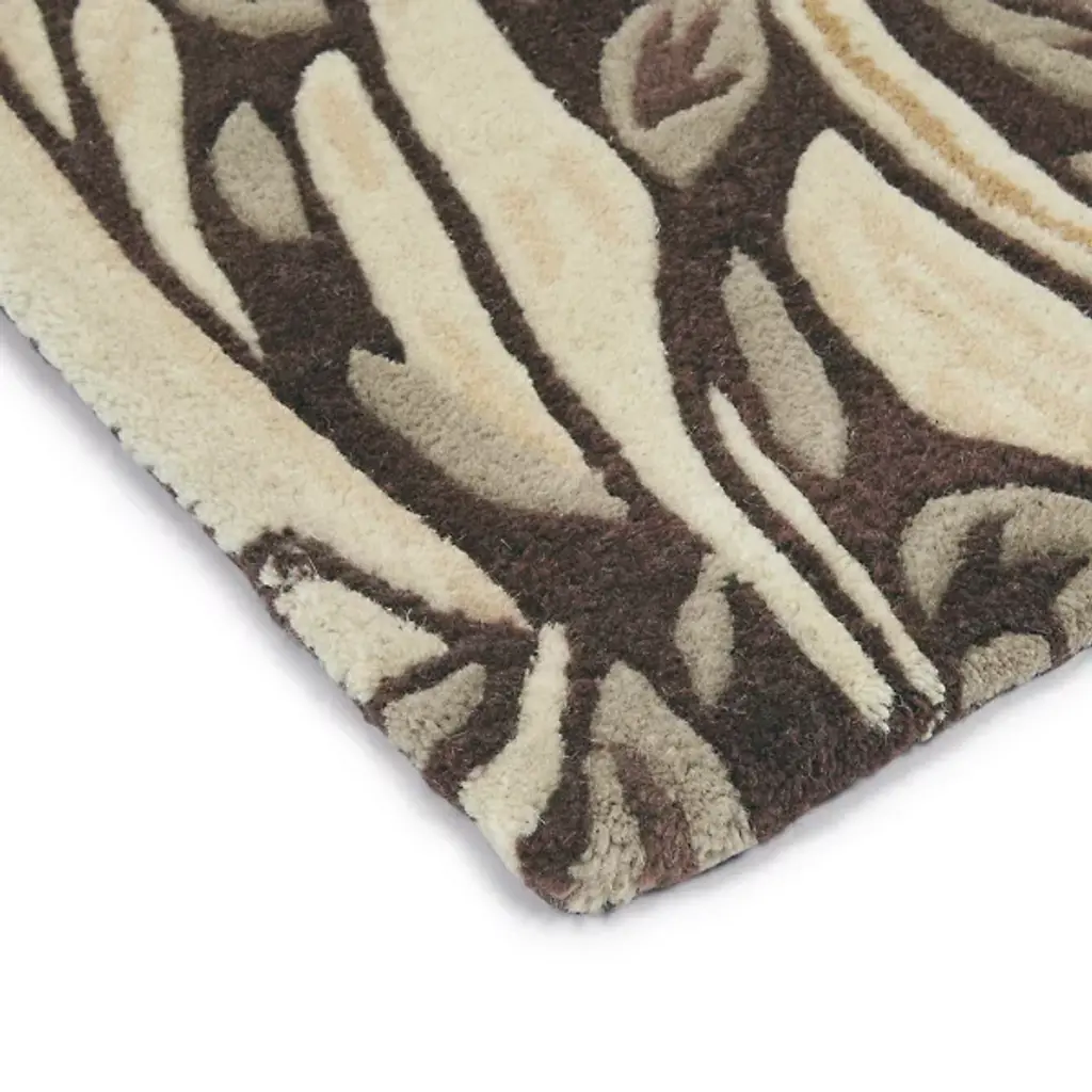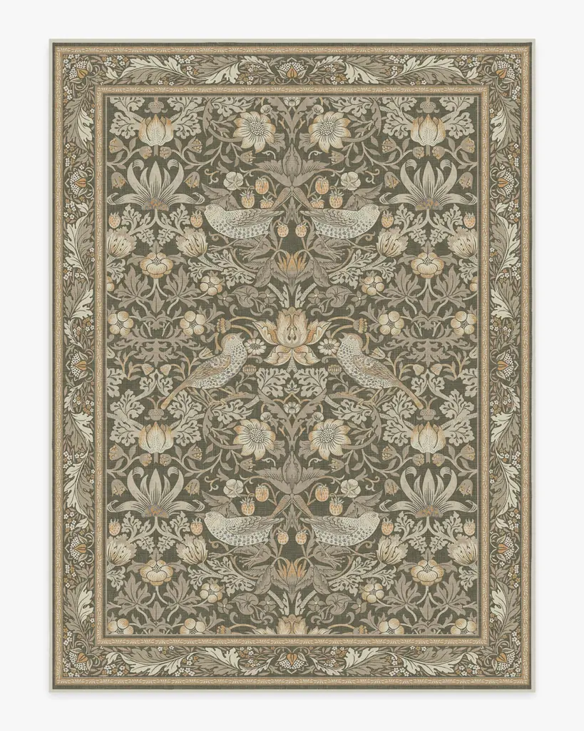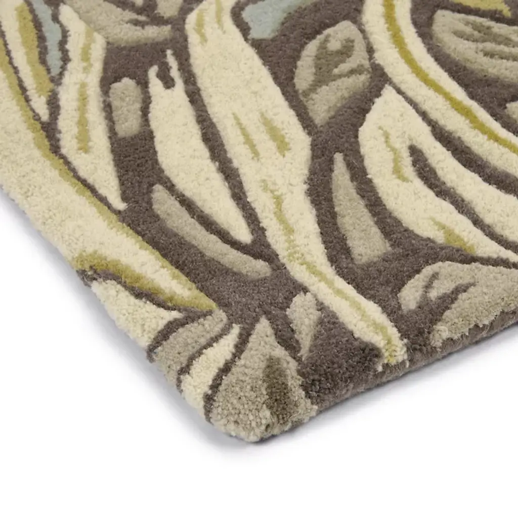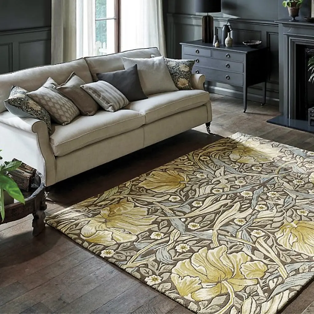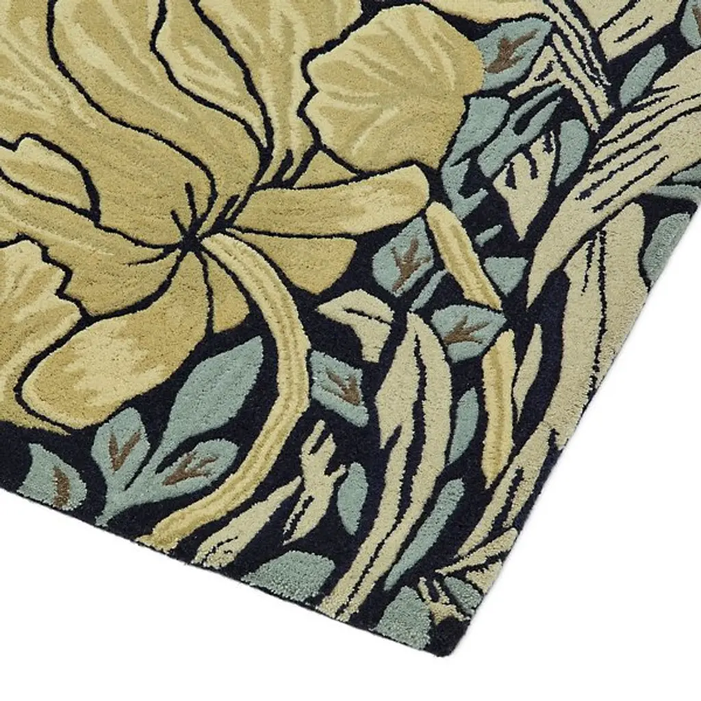 The Pimpernel Area Rug from Morris & Co shows off a swirling vintage pattern created by William Morris. Woven from new wool by Indian artisan hands, each rug is subtly distinct, adding a soft layer of comfort to its surroundings. The swirling vines and graceful blossoms race across its surface, as the rich green leaves contrast well with the pale blossoms, creating a memorable, artistic character.