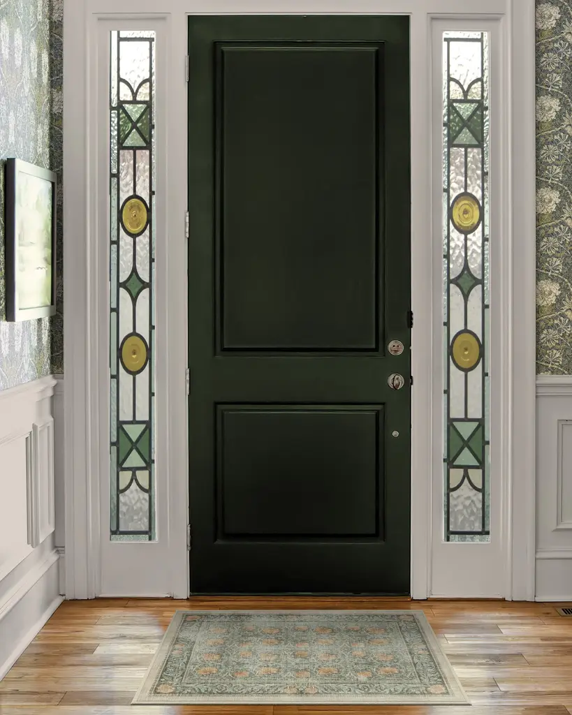 Our Morris & Co. Pimpernel Jade Rug brings the rhythmic florals of William Morris' famed wallpaper to the floor with refined elegance. The interlocking vines and tulips that once scaled Morris's own dining room in his Kelmscott House are now framed with an ornate border that helps define any space. Warm blooms sing atop textured cool grey and blue-greens for a natural color scheme inspired by the English countryside. Water-resistant, stain-resistant, and machine-washable. Rug colors may vary slightly according to your device and the lighting in your space.
