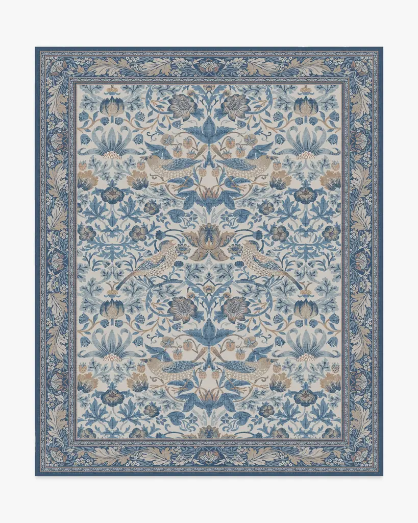 The Pimpernel rug by Morris & Co. features flowers growing, twisting and flourishing with wild elegance. William Morris originally drew inspiration for this captivating pattern from the tulips and vines that grew in the dining room of his countryside home in England. Now, the same floral motif comes to life on the surface of a beautifully crafted wool rug. Originally made famous as wallpaper designs, Morris & Co.’s beloved patterns now delight in the form of soft and luxurious rugs that are perfect for adding character and telling stories in any room.