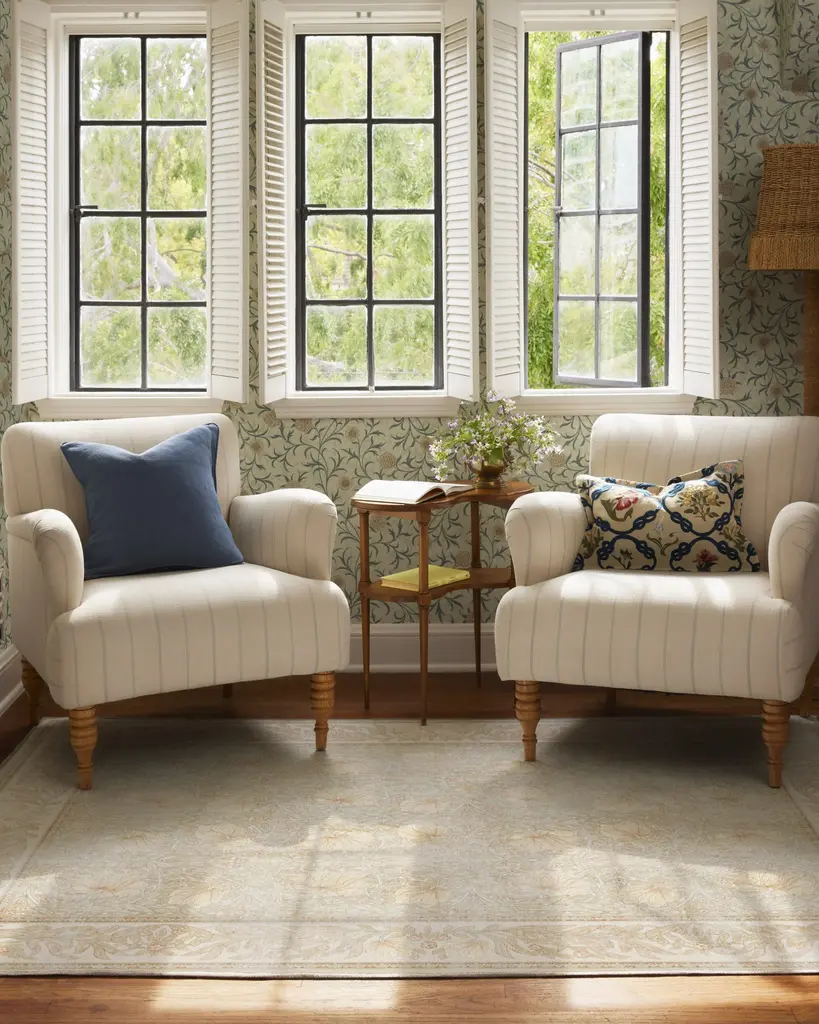 Our Morris & Co. Pimpernel Vintage Blush Rug brings the rhythmic florals of William Morris' famed wallpaper to the floor with refined elegance. The interlocking vines and tulips that once scaled Morris's own dining room in his Kelmscott House are now framed with an ornate border that helps define any space. A decadent mix of beige, cream, blush and grey bring a lighter touch to this intricate pattern. Water-resistant, stain-resistant, and machine-washable. Rug colors may vary slightly according to your device and the lighting in your space.