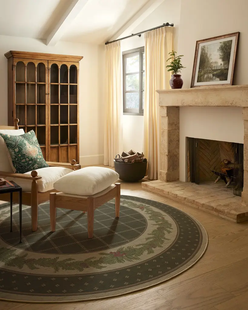 Our Pine Border Dark Olive Rug is the perfect centerpiece for holiday celebrations. Inspired by traditional holiday decor, this winter design features a seasonal, pine border with hints of holly berries and delicate filigree, elegantly framed by an outer decorative foulard border and a checkered field. The color palette showcases dark olive green tones complemented by warm neutrals and bright pine greens, accented with pops of berry hues. Water-resistant, stain-resistant, and machine-washable. Rug colors may vary slightly according to your device and the lighting in your space.