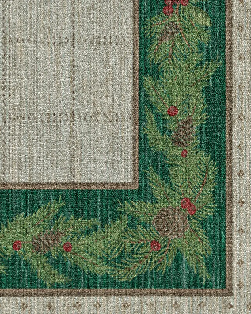 Pine Border Green & Silver Rug