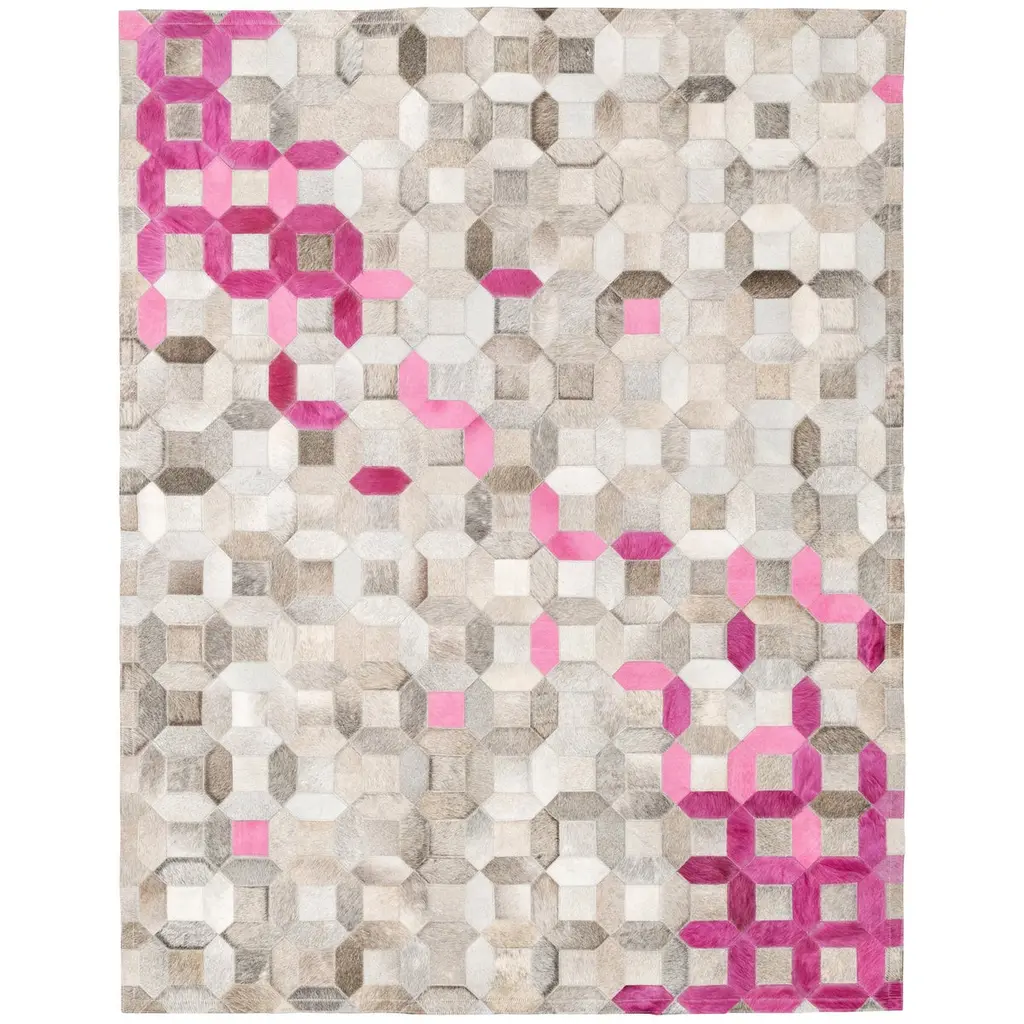Pink, Gray Tessellation Trellis Pink Customizable Cowhide Area Floor Rug Large