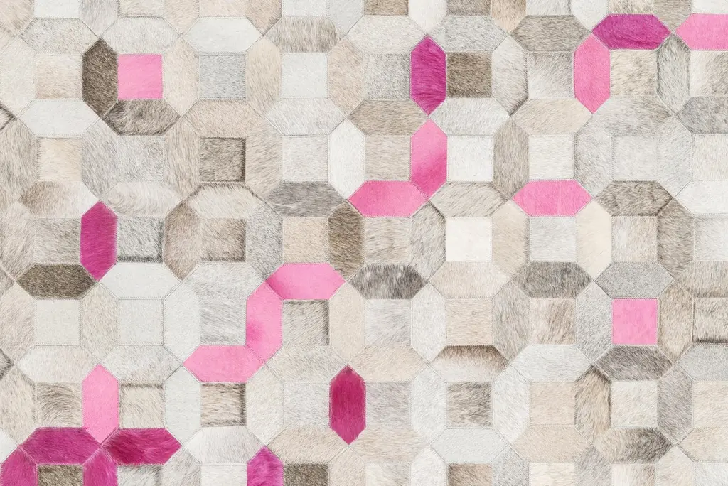 Crammed with color, this new release under our Alta line will add spades of charisma and sophistication to your interior. The Pink is combined with natural grey shades to create a one-of-a-kind look – guaranteed to refresh and Revive your interior!The Alta range combines smaller tiles and tessellation’s with pops of color, in a combination that delivers on style, but saves on price. Small measures 2 x 1.6m (6’7” x 5’3”). Large measures 2 x 3M (6’7” x 9’8”) and X-Large measures 2.75 x 3.65m (9' x 12')This item can easily be customized to any color size or shape upon request.Art Hide rugs are usually made to order. Please allow around 4 weeks for delivery.