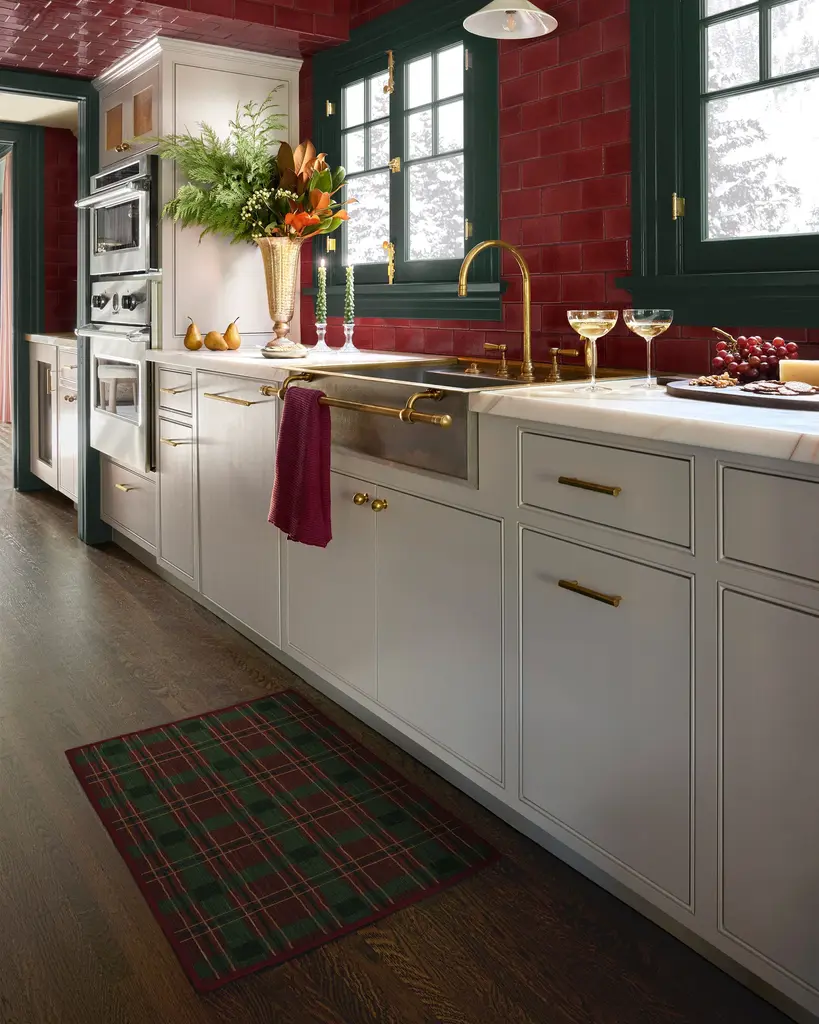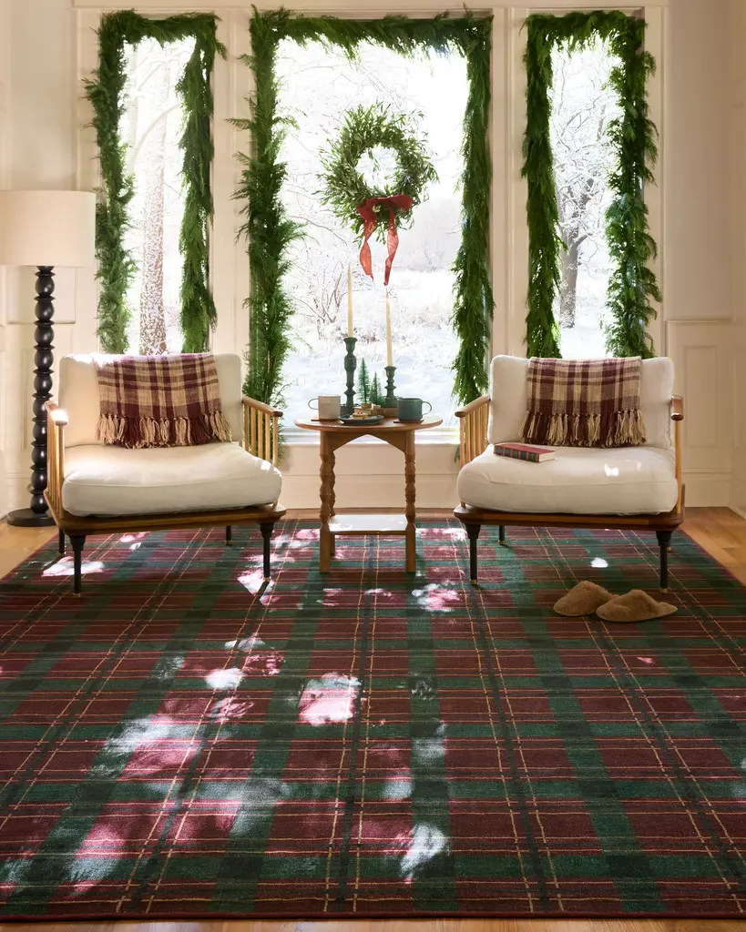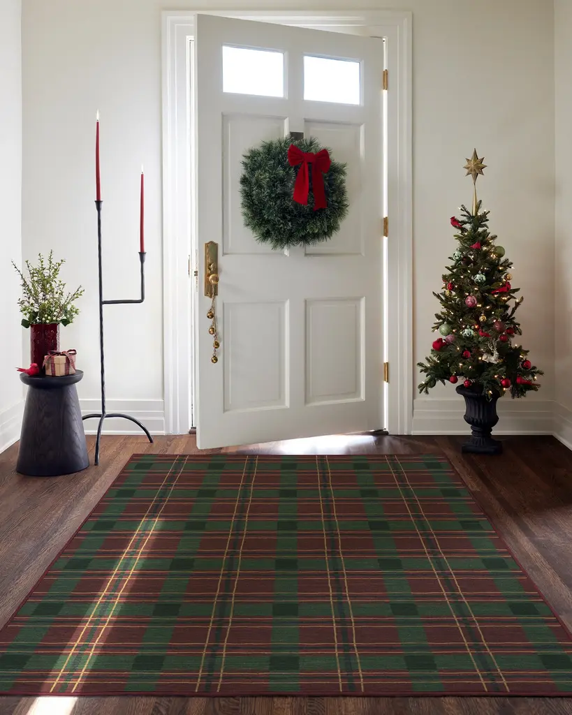 Tis the season to cozy up to our Piper Plaid Burgundy & Green Rug. This symmetrical, textural plaid design features a seasonal palette of red hues and hints of gold that are intricately woven together with deep greens and soft sage. Water-resistant, stain-resistant, and machine-washable. Rug colors may vary slightly according to your device and the lighting in your space.