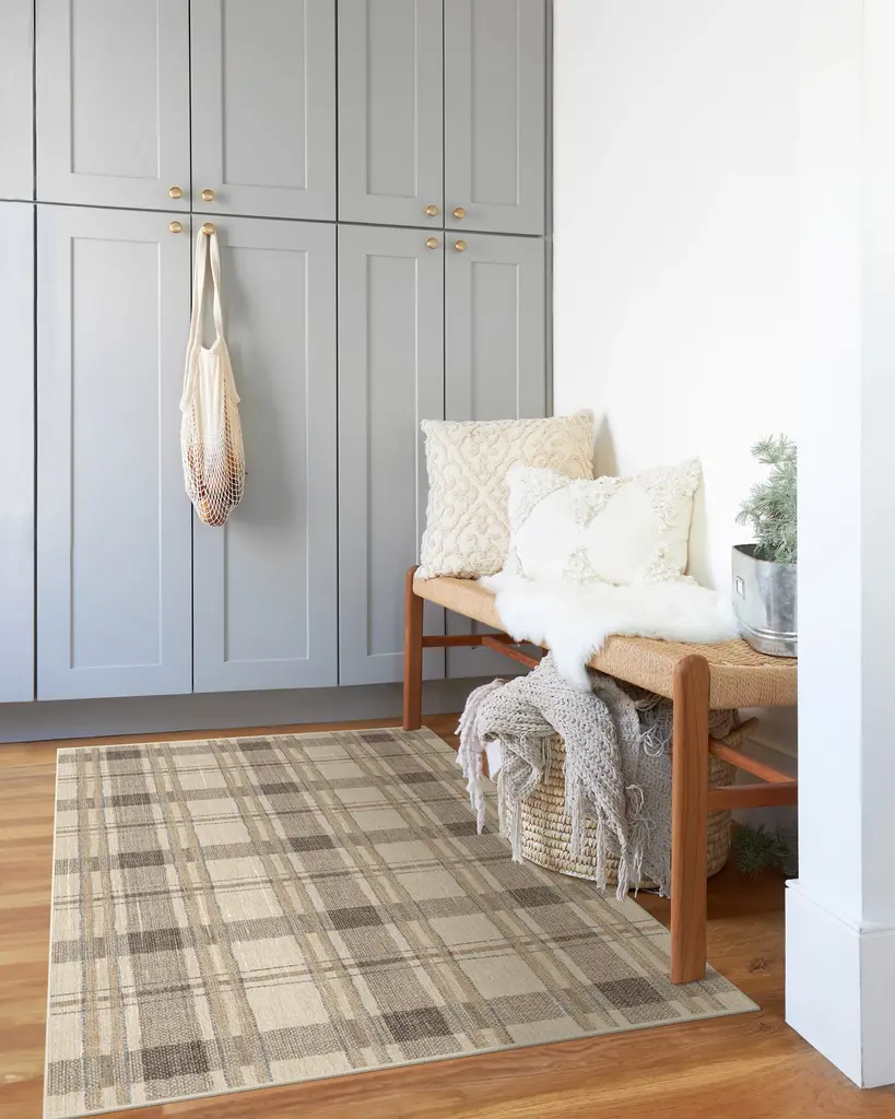 Add some traditional charm to your home with our Piper Plaid Neutral Rug. This classic plaid design features an inviting blend of neutral tones on a cream background. Water-resistant, stain-resistant, and machine-washable. Rug colors may vary slightly according to your device and the lighting in your space.