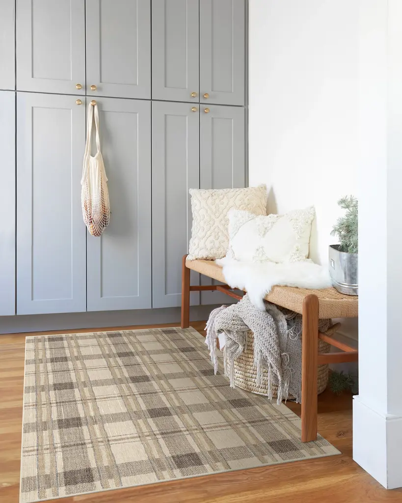 Add some traditional charm to your home with our Piper Plaid Neutral Rug. This classic plaid design features an inviting blend of neutral tones on a cream background. Water-resistant, stain-resistant, and machine-washable. Rug colors may vary slightly according to your device and the lighting in your space.