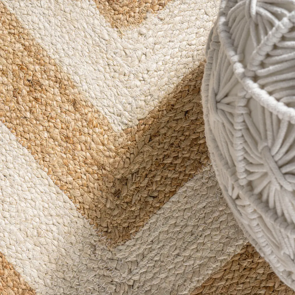 Piper Two-Tone Chevron Round Jute Round Area Rug - Cream / 4' Round