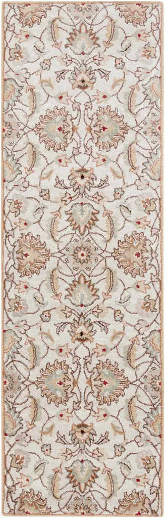 Collection: Pirtleville Colors: Tan, Rust, Medium Gray, Medium Brown, Dark Brown, Burnt Orange Construction: Hand Tufted Material: 100% Wool Pile: Medium Pile Pile Height: 0.39" Styles: Traditional Backing: Canvas Made In: India Thickness: 0.87" Price Range: $$$$$ (Affordable)