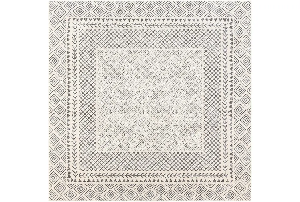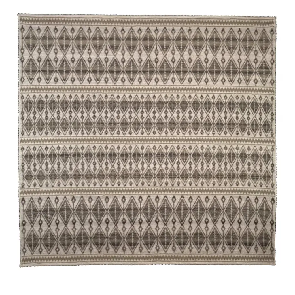 The Pisa Square Rug from Alder & Ore introduces geometric simplicity through clean diamond patterns. Made in India, the wool-polyester blend provides reliable performance in busy spaces. Concentric squares dominate the middle, while tribal-inspired patterns mark each corner. The hand-tufted construction creates multiple layers that add dimension to the design. This square format works particularly well in dining areas or as a central anchor in living spaces.