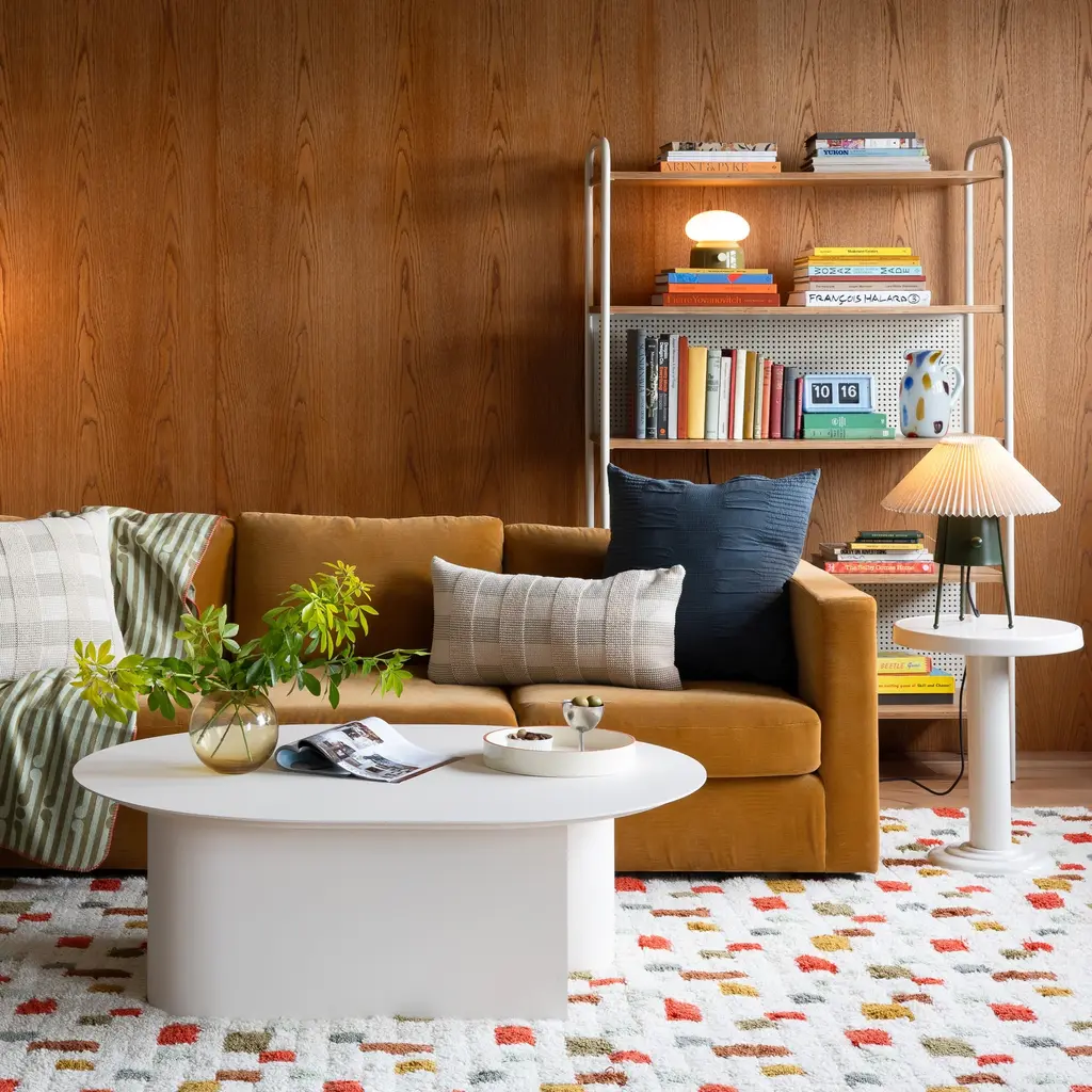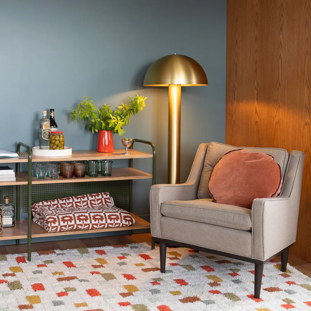 Crafted by master artisans in India, this rug's high pile texture provides a plush wool surface. And with a geometric pattern full of movement and earthy yet vibrant hues, it brings a playful, cozy touch to your decor.