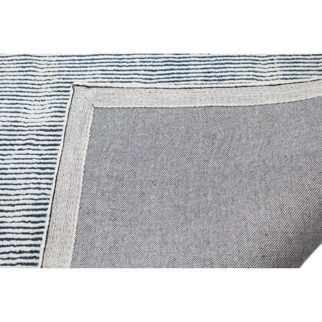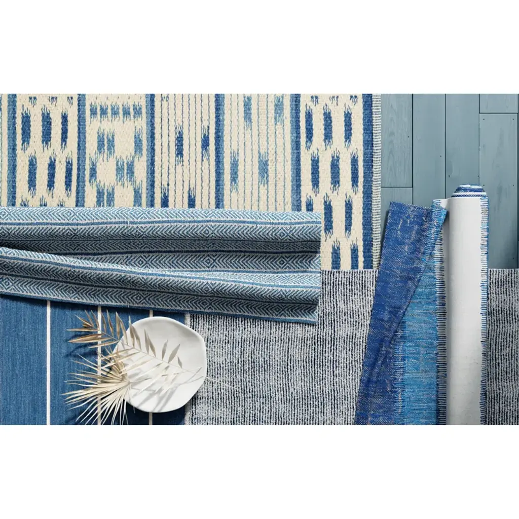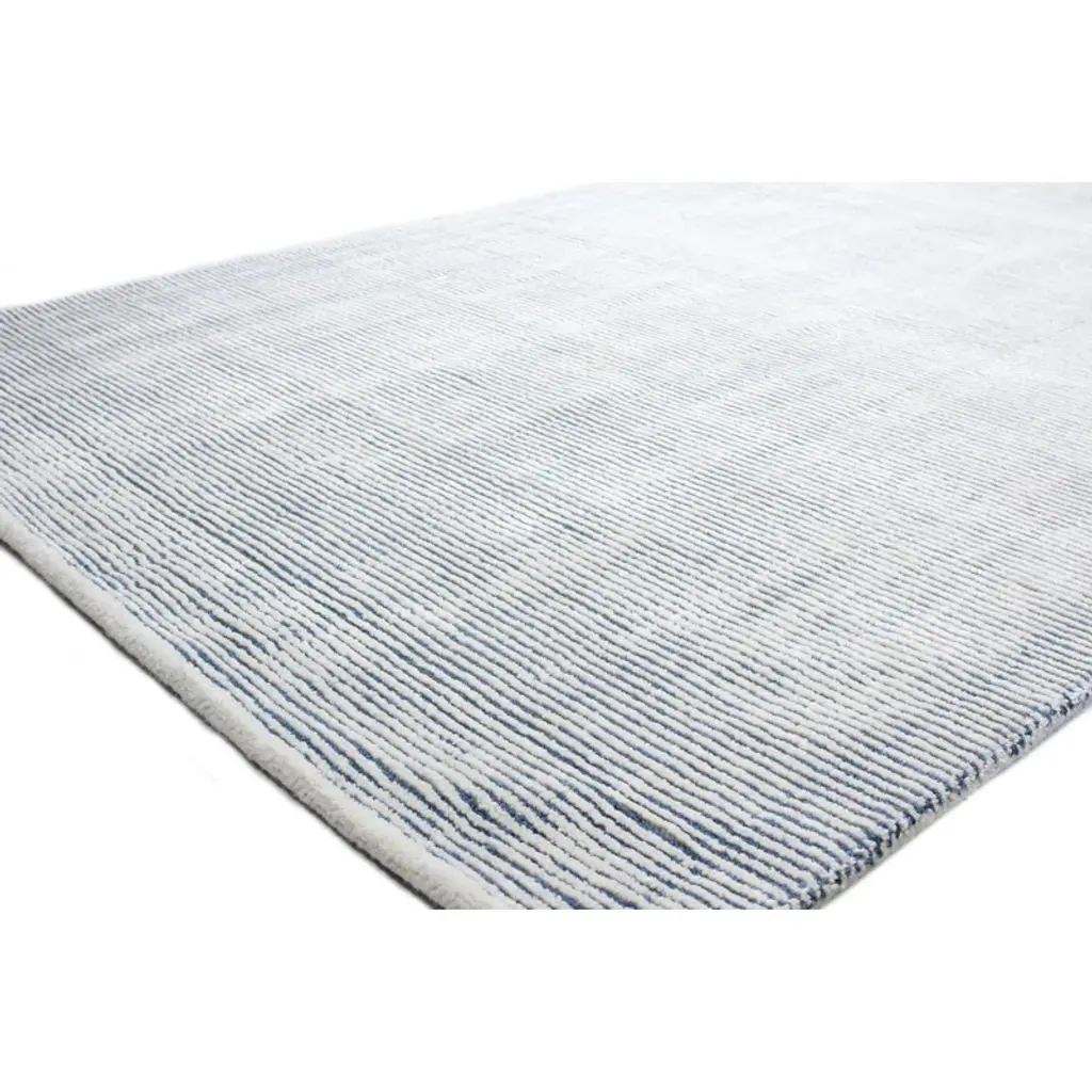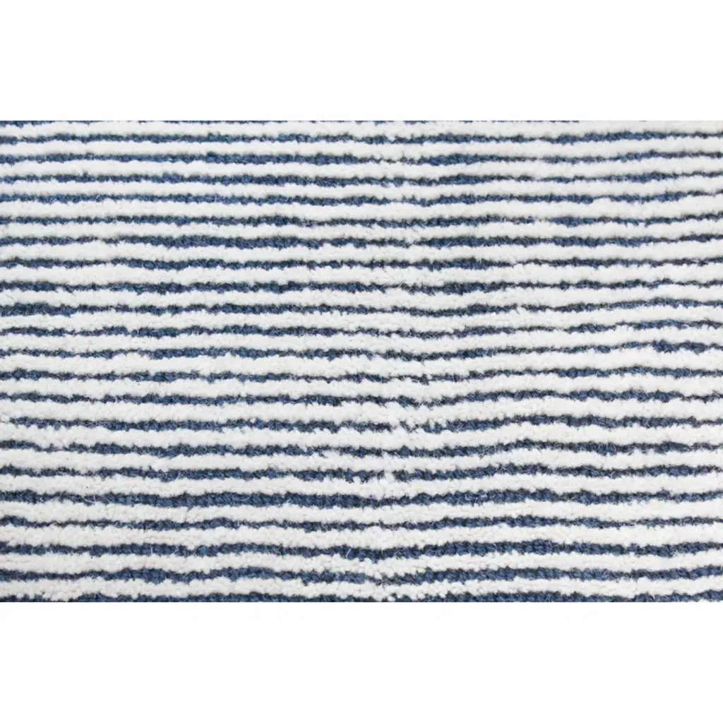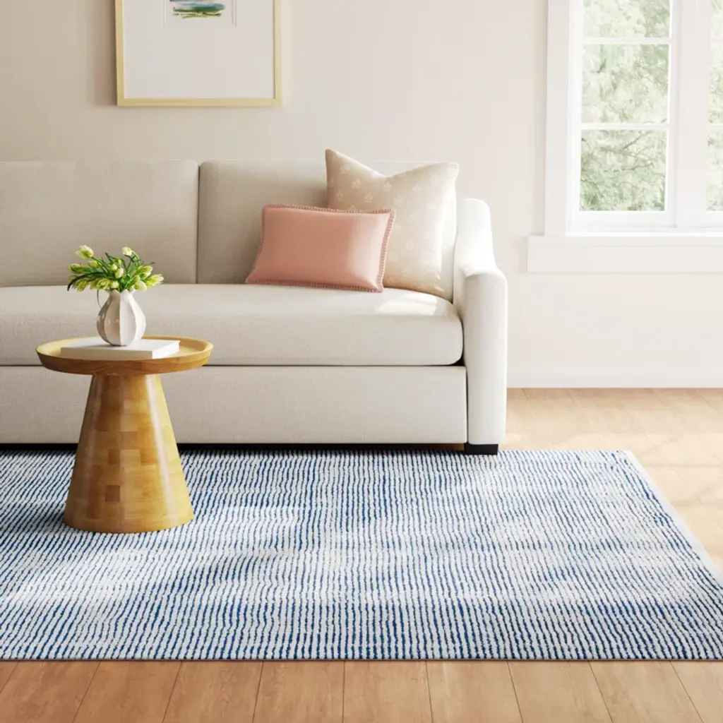 This hand-knotted wool rug adds just the right relaxed look to your floors. It's handmade in India and has a medium 0.5" pile that adds just the right amount of give underfoot, but is still easy to clean. We love it for your living room or bedroom. This 100% wool rug features an imperfect striped pattern, with lines of different textures and variations, so it has a casual feel. Plus, its blue and ivory hues add a touch of coastal style. We recommend rolling out a rug pad underneath to help keep this rug in place.