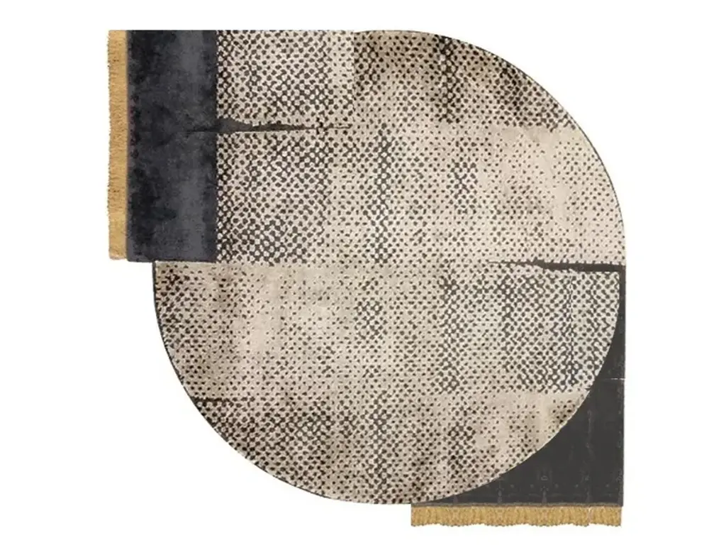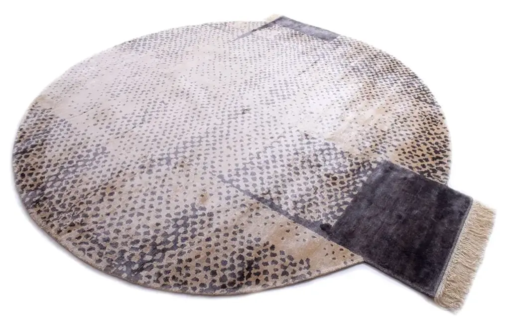 PLANET ROUND is an handmade round wool rug.The name DaFé is taken from a tool used in carpet weaving which is tapped on the carpet to reinforce its knots. The DaFé collection started in 2014 from a study on old weaving methods and patterns. The experience of many generations in the field of carpets weaving and their knowledge of patterns and methods belonging to the various regions where this profitable craft started contributed to the creation of this unique hand-crafted collection. DaFé Collection is the result of a different approach to rugs as complementary parts of the interior environment. Despite appearing as an independent item, it has a strong and substantial harmonizing function. It is a versatile element that contributes to fulfilling a wide range of purposes such as the space’s mood, style and texture. Our work aimes at creating outstanding designs and using techniques of different eras belonging to different cultures and regions, to offer customers a handmade collection with a contemporary taste.Provenance: IndiaManual fabric cutting
