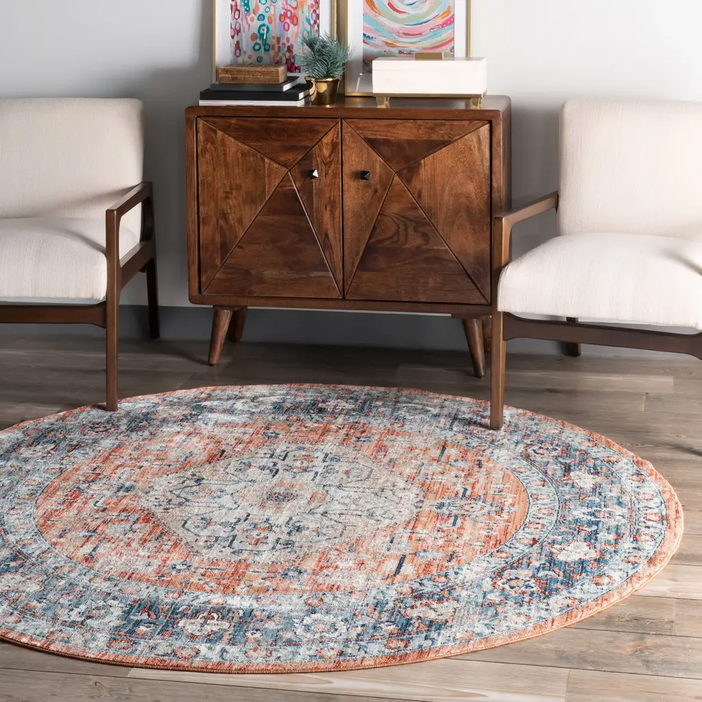 The regal and sophisticated design of our faded medallion area rug stands out for any room with vintage decor elements. It features unique fibers that reflect a different sheen from each and every angle. Composed of luxuriously soft fibers in Turkey, this rug promises durability and resilience. Blend this floor covering in perfectly with any existing decor. Due to the weaving method, this area rug is subject to slight variation in its size, as shrinkage may occur during the looming process. Opt for the best choice with our pet-friendly and easy to clean area rugs.