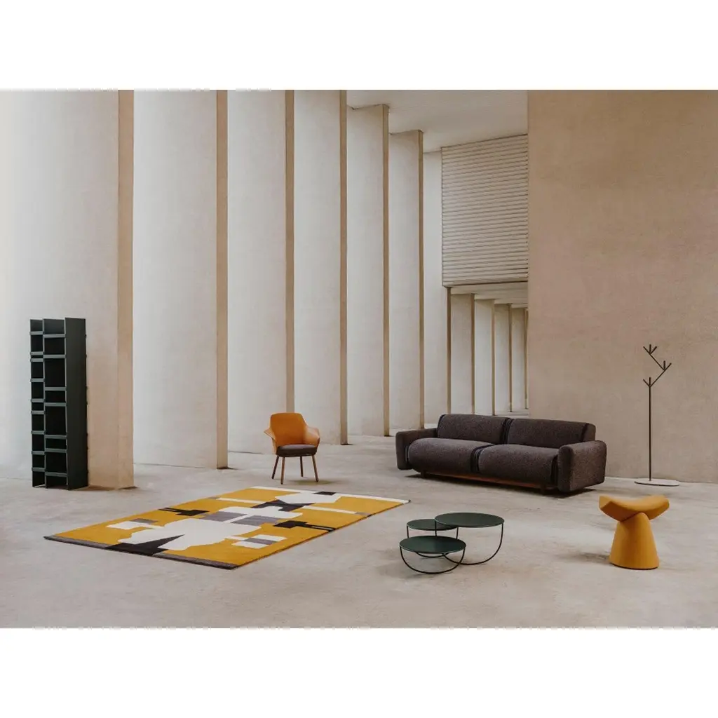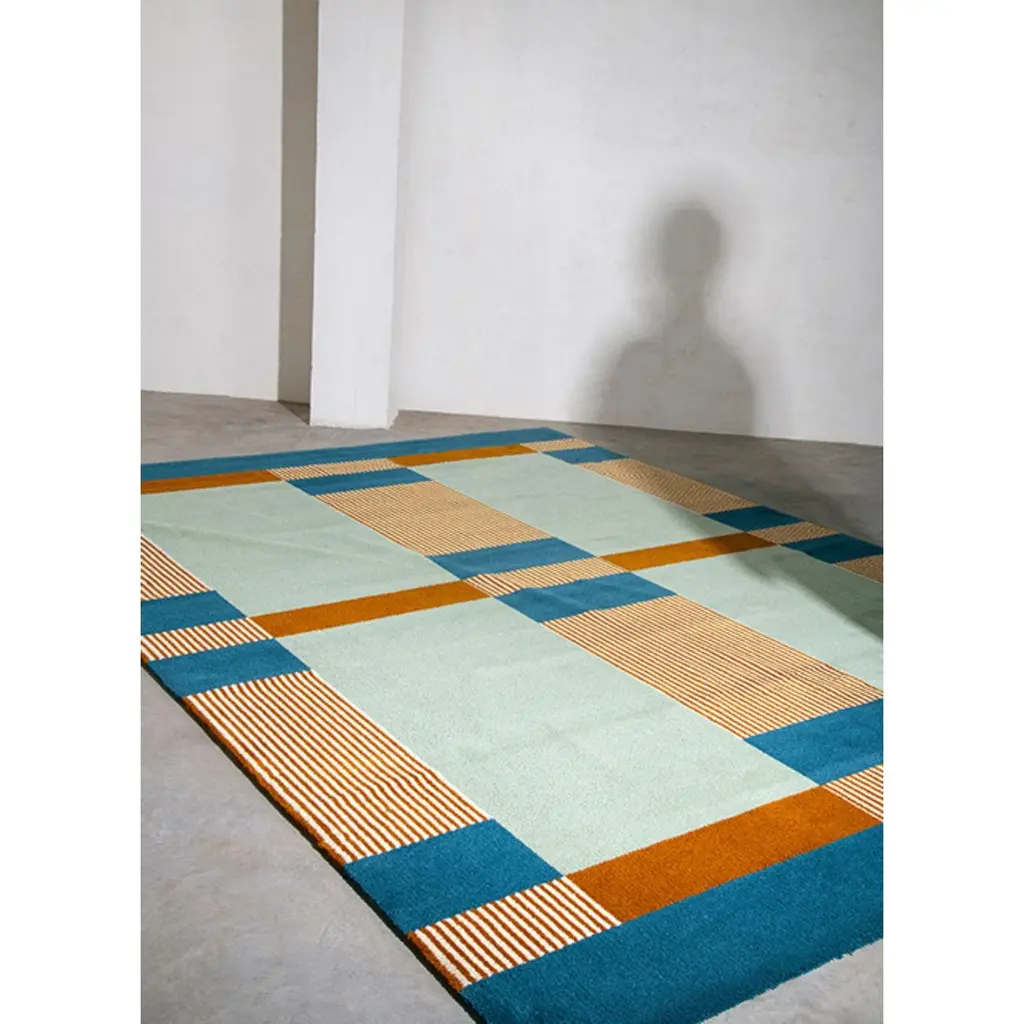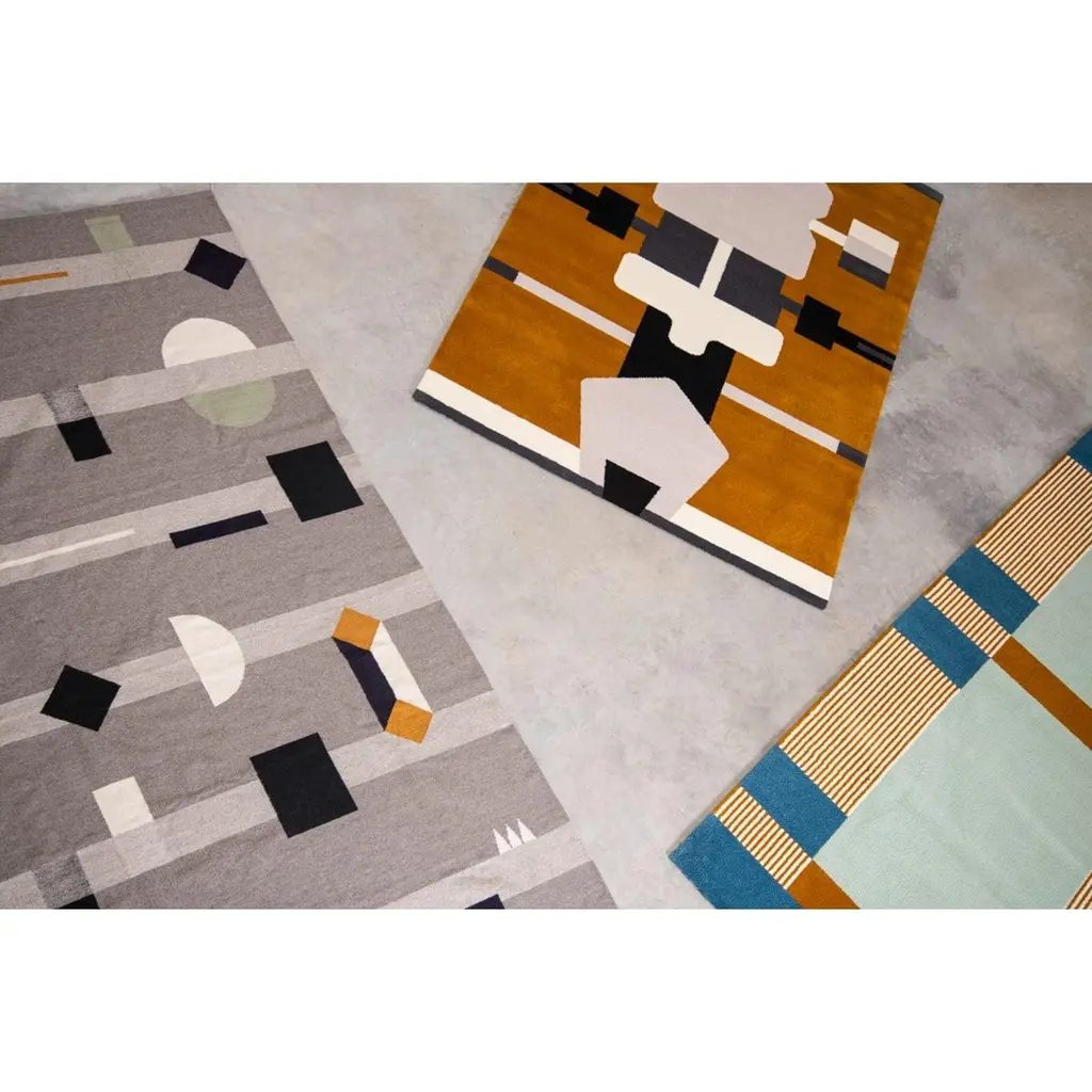 Playtime rug paper scissors by Emma BoomkampMaterials: W400 x D300 cmDimensions: Wool hand knotted or tufted version Emma Boomkamp’s Playtime rug collection is inspired by the childhood. A nod to the playground, the first place where we experience interplay with others between sharing and competition. Hopscotch,game board or labyrinth, the patterns are entangled and overlaid on each other with mischief or seriousness.The rug designs are available in tufted, printed and handwoven fabric. The handwoven rugs are made inTeotitlán de Valle, Oaxaca, Mexico and the wool that is used is local Mexican wool. Since it is hand-dyed therecan be small color differences between every batch.Emma Gavaldon van Leeuwen Boomkamp was born in 1989 and raised in The Netherlands. Half Dutch and half Mexican, the designer currently lives and works in Mexico City. After studying Product Design and Economy at the University of Amsterdam, she moved to Mexico to explore texture, colors and patterns through Craft. She works in her studio with various textile techniques, such as natural dyeing and macramé. She collaborates with artisans for glassblowing and rug weaving, with the support of FONCA, the MexicanNational Fund for Culture and the Arts.