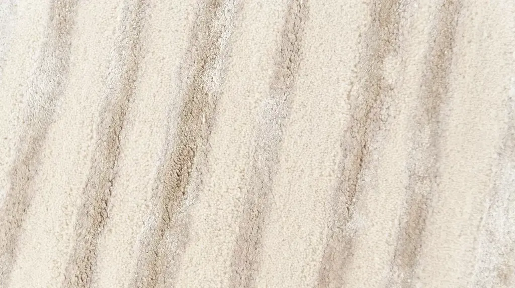 A play on optics or pleating, PLEASURE's falsely rectilinear stripes are like waves in motion across the surface of the rug.