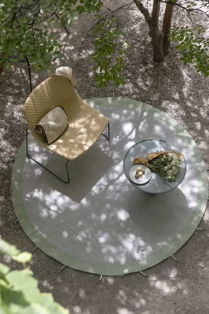 Pleiadi is an idea born out of the blue, a sketch made by hand on a piece of paper. No digital processing, only the continuity of an element that repeats itself within a geometric shape. Then comes the work and care of our craftsmen, capable of translating with skill and dedication, an idea into a piece of furniture.Rope rug, assembled and hand sewn. Synthetic 'w-proof' fiber, resistant to UV rays and bad weather.Quality: Handsewn outdoor rug. Synthetic 'w-proof' yarn, UV and weather resistant.Thickness: 9 mm approx.Weight: 2,4 Kg/sqm approx.AVAILABLE COLOURS:GB | I (brown grey | ivory) I | GB (ivory | grey brown) SG | SI (sage | silver) SI | SG (silver | sage) The configuration (size + color) must be completed to obtain the final price of the product.‘Plein Sud’ is a line of carpets for the residential and the ‘Contract’ outdoor, combining comfort and elegance, design experience and excellent raw materials. It ‘a collection of innovative products for the outdoor environment designed with the same comforts of home interiors, for the pleasure of living in beautiful surroundings. Thanks to the finish of the mélange yarn, with elegant shades and edged in different colours, the collection Plein Sud becomes a quality complement both for outdoor and indoor spaces. The carpets are made on hand looms with a synthetic fiber. The particular process that combines the plots of the frame to the manual applications, gives these products the thickness, the quality and the elegance of indoor carpets. The yarn is perfectly suitable for outdoor environments thanks to its durability and its resistance to atmospheric agents. All the models of the collection ‘Plein Sud’ have a high UV stability, are water repellent and can be stain-proof and anti-mold treated. Carpets can also be custom made, after consultation with our technical department. Plein Sud is 100% ‘renewable design’