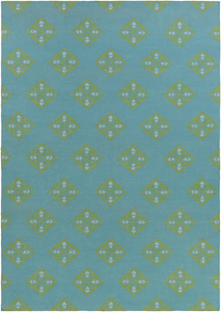 Collection: Poestenkill Colors: Teal, Green, Ice Blue Construction: Hand Woven Material: 100% Wool Pile: No Pile Styles: Contemporary Made In: India Thickness: 0.16" Price Range: $$$$$ (Most Affordable)