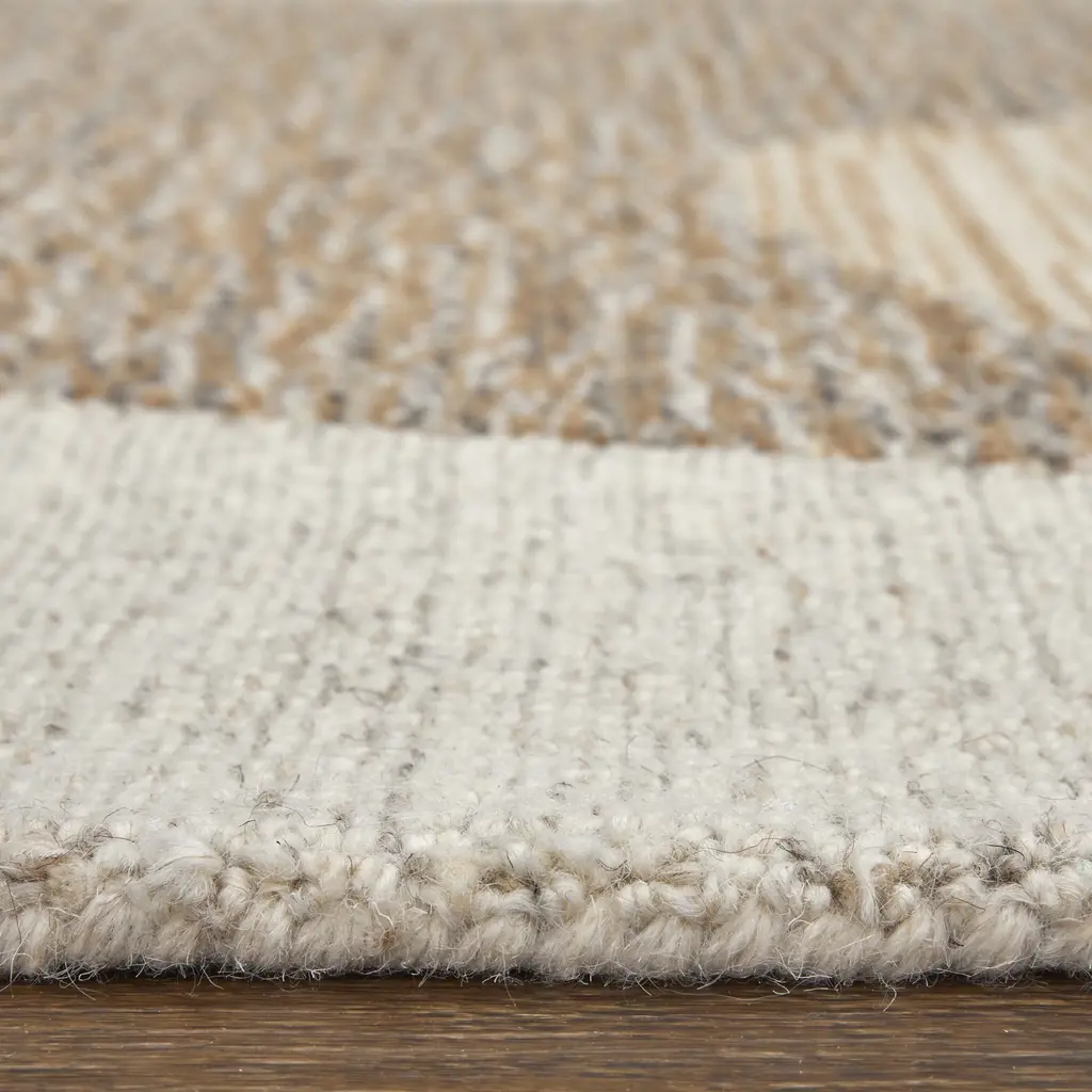 Collection: Pollock Colors: Dark Red, Tan, Ivory Construction: Hand Tufted Material: Face: Wool, Nylon / Warp: Cotton Pile: Low Pile Pile Height: 0.59" Styles: Contemporary,Casual,Bohemian & Eclectic Backing: Cotton Made In: India Thickness: 0.59" Price Range: $$$$$ (Affordable)