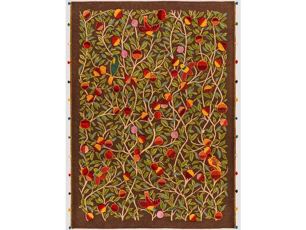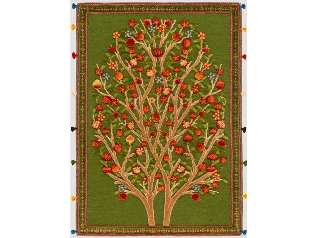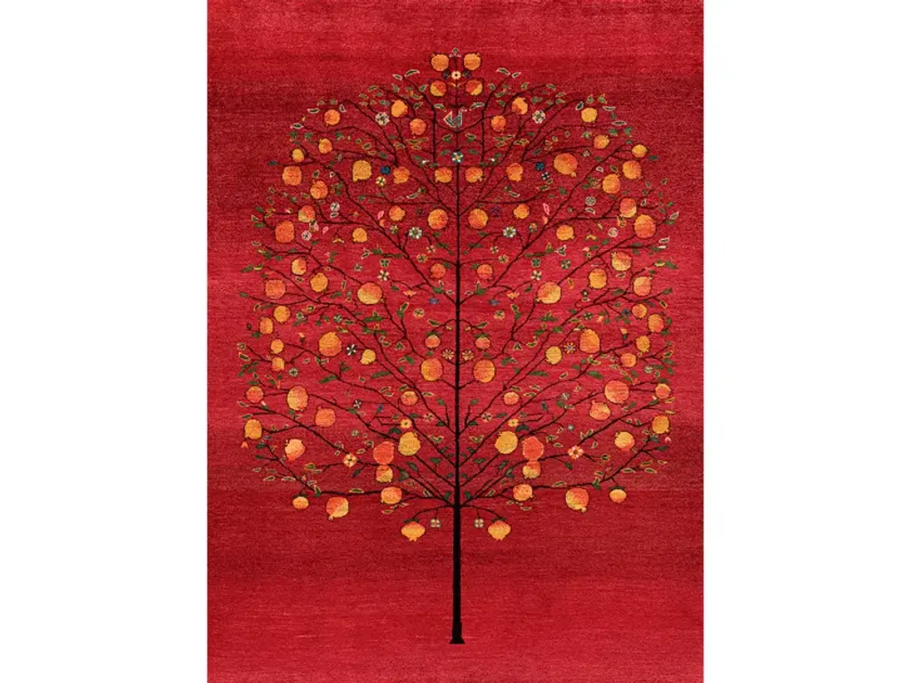Pomegranate Tree of Life 29 is a rectangular wool rug.Zollanvari Super Fine Gabbeh.Trees, flowers and animals (principally lions) are design themes that are used by tribal women to weave some of Zollanvari’s most original Gabbehs. The weavers are given patterns and colour ranges (often inspired by ancient and archaic patterns such as the ‘Tree of Life’) but have a free hand in producing these works of woven art using their imaginations and the traditional design vocabulary passed down through each new generation of weavers. This makes each Gabbeh unique and individual. Flora & Fauna design Gabbehs are also available in Zollanvari Super Fine (Kashkuli, Luribaft and Bulurbaft) and Zollanvari Fine qualities.The designs are available in custom and bespoke sizes and colours.