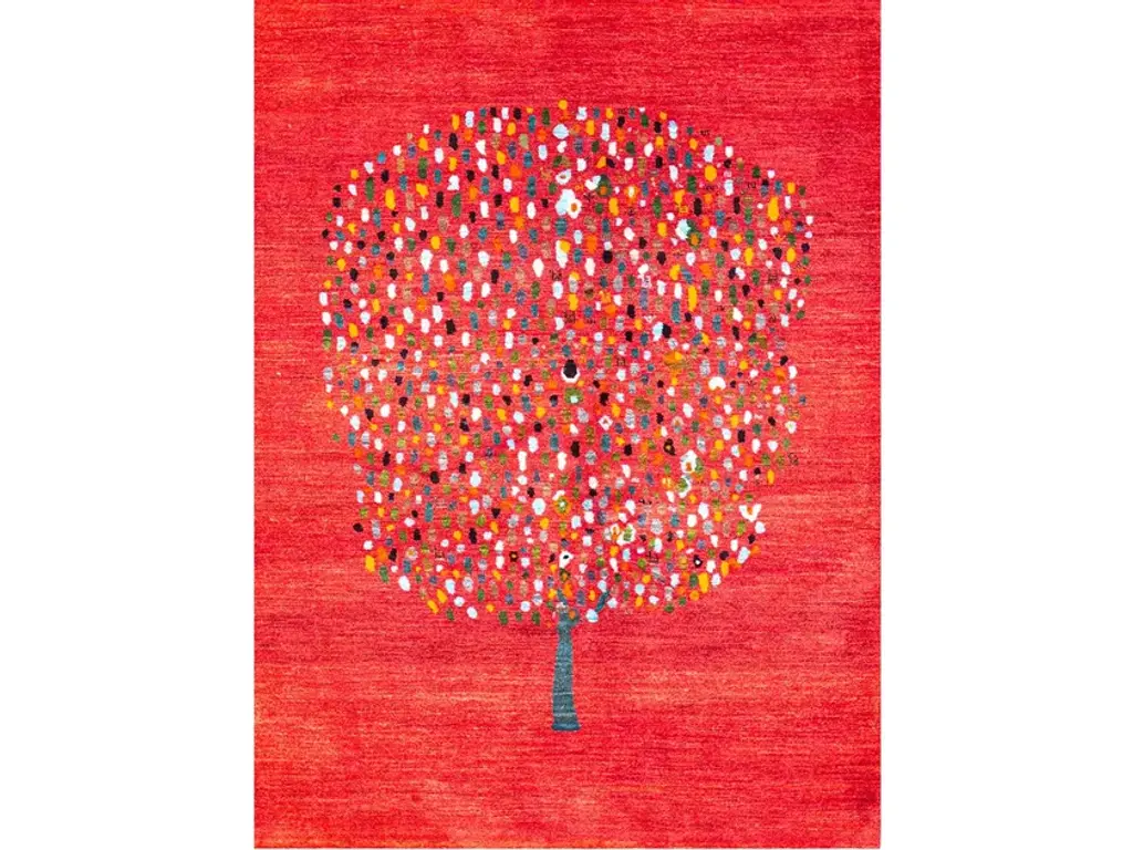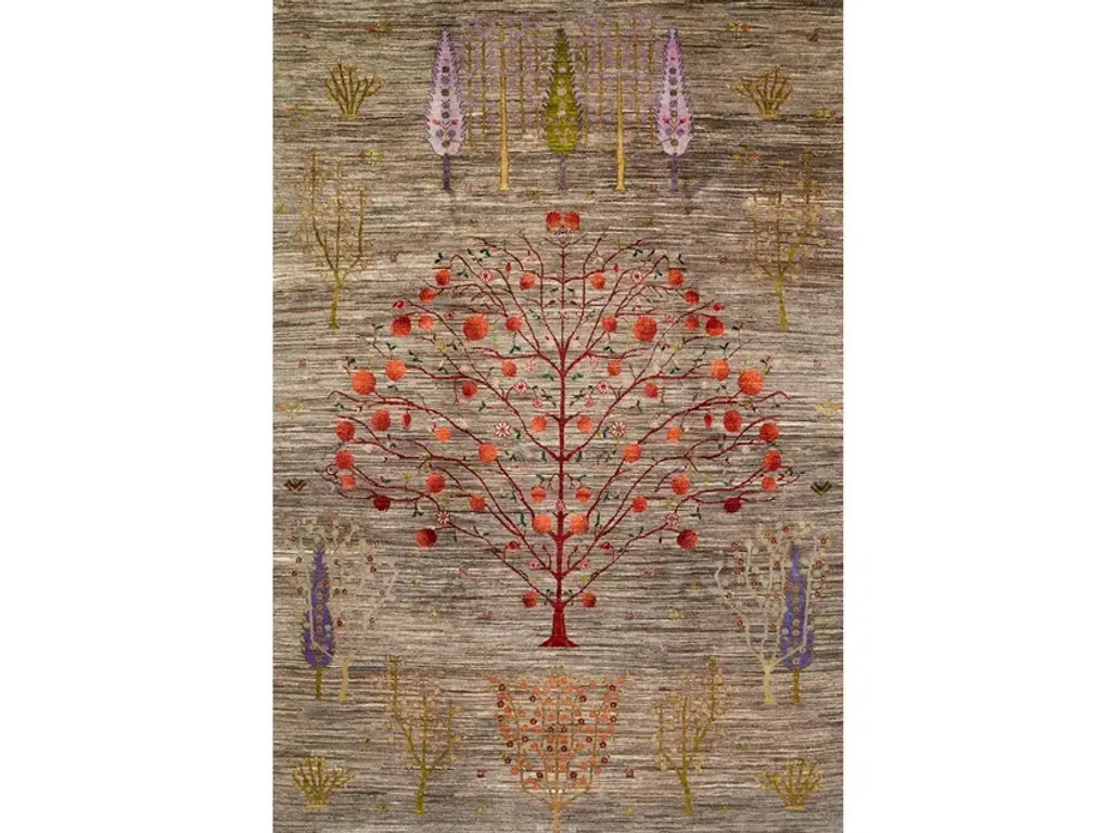 Pomegranate Tree of Life 3 is a rectangular wool rug.Zollanvari Super Fine Gabbeh.Trees, flowers and animals (principally lions) are design themes that are used by tribal women to weave some of Zollanvari’s most original Gabbehs. The weavers are given patterns and colour ranges (often inspired by ancient and archaic patterns such as the ‘Tree of Life’) but have a free hand in producing these works of woven art using their imaginations and the traditional design vocabulary passed down through each new generation of weavers. This makes each Gabbeh unique and individual. Flora & Fauna design Gabbehs are also available in Zollanvari Super Fine (Kashkuli, Luribaft and Bulurbaft) and Zollanvari Fine qualities.The designs are available in custom and bespoke sizes and colours.