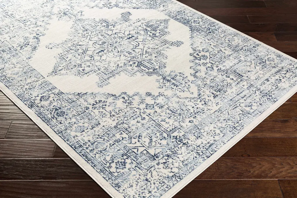 Collection: Pooraka Colors: Light Gray, Charcoal, Navy, Off White Construction: Machine Woven Material: 100% Polypropylene Pile: Medium Pile Pile Height: 0.32" Styles: Traditional Made In: Turkey Thickness: 0.36" Price Range: $$$$$ (Most Affordable)