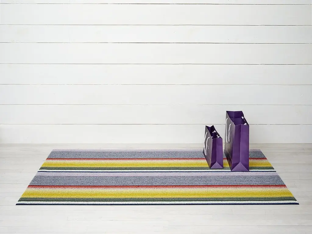 With the sturdiness of an all-weather doormat and the plush good looks of a rug, Shag mats bring texture and traction to any space. They are made by tufting our TerraStrand yarns onto a primary backing and then bonding this looped top layer to a sturdy, slip-resistant base of hardworking vinyl, eliminating the need for a rug pad. Made to retain their rich textures and distinctive hues through many years of use, Shag mats are quick to dry, free of phthalates, and resistant to staining, fading, mold, mildew, and chlorine. They are ideal for entryways, mudrooms, kitchens, bathrooms, porches, patios, pool areas, and beyond. TO CLEAN: Shake out, vacuum or hose with water and hang to dry. Mold, mildew and chlorine resistant. Quick drying. For over a decade, New York based designer Sandy Chilewich has been creating original and innovative vinyl products for the home. Her woven, tufted, molded and spun textiles are available in a range of vibrant and neutral hues that have become synonymous with the Chilewich brand name.