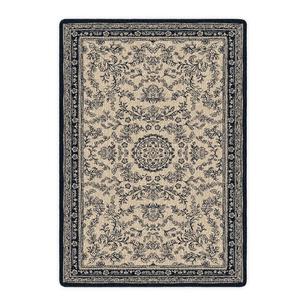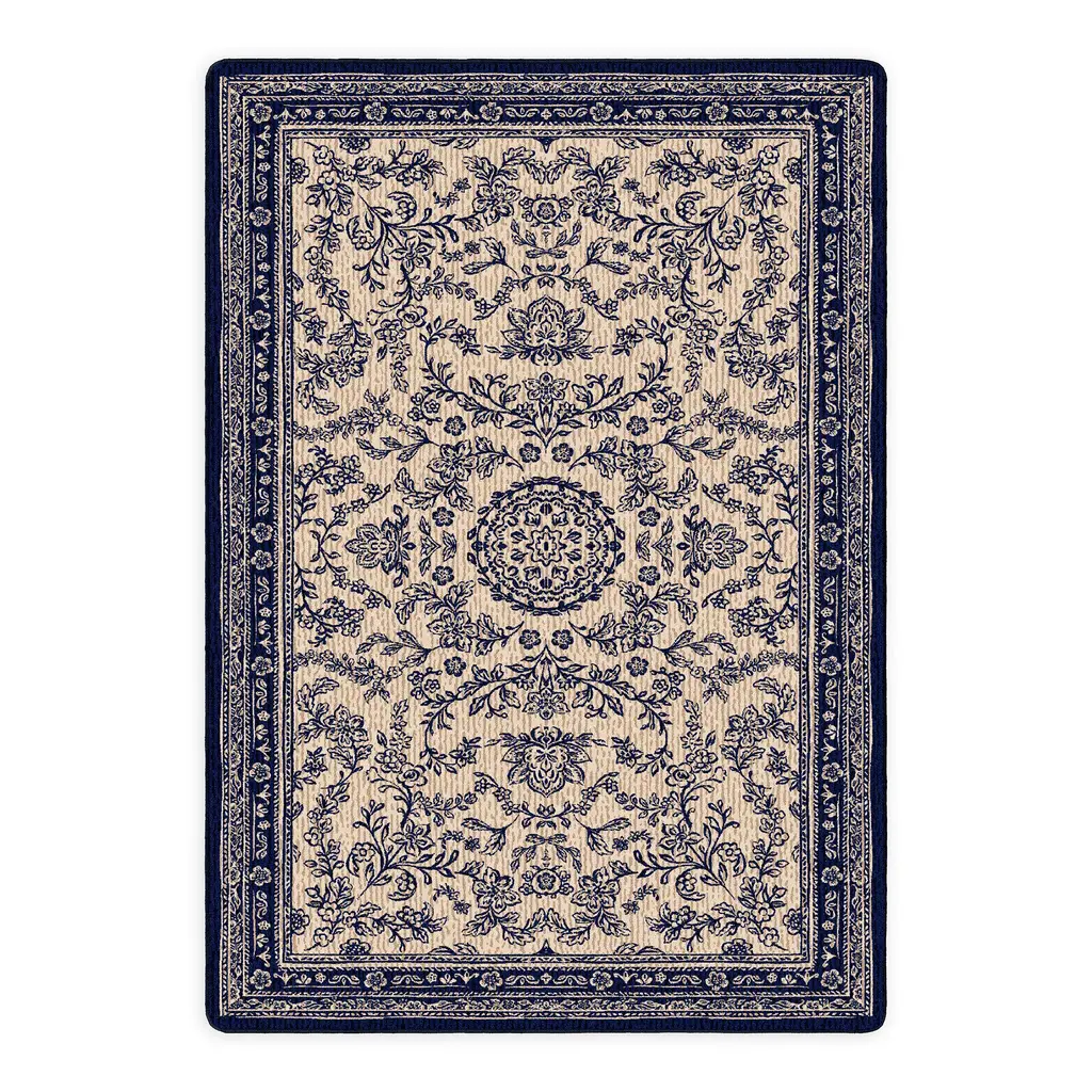 Our Porcelain Garden EnduraStran® Rug is not only beautiful with its vibrant color and wonderfully detailed design, but it's made in the USA of commercial-grade EnduraStran® nylon, so it's extra durable and fuss-free as well. The rug features an elegant pattern with geometric botanical motif in rich hues of blue and ivory that will work wonders in any type of room or style of decor. And because of its durability, it is ideal for high-traffic and family-friendly areas, like living room, family room, den and bedroom. EnduraStran® fabric is commercially rated for its superior durability, and this rug is fade-, fire- and stain-resistant. The serged edges also provide long-lasting wear and reduced fraying. Easy to care for with vacuum and spot cleaning with water as needed. Low pile is approx. ⅓"H; sizes are approximate. Can be used with a rug pad. Made in the USA.