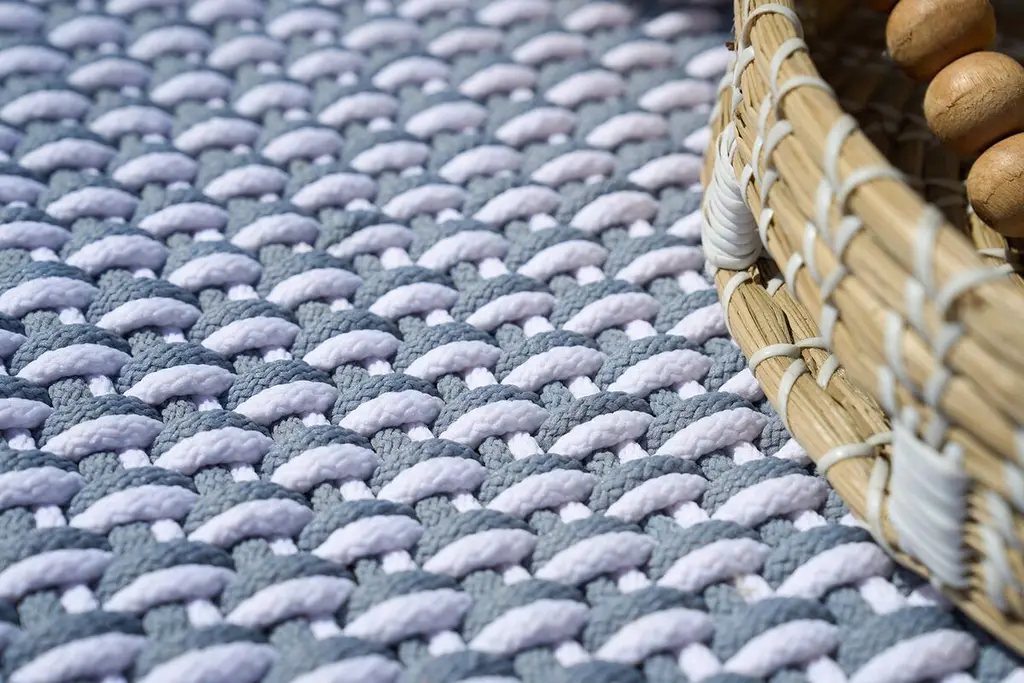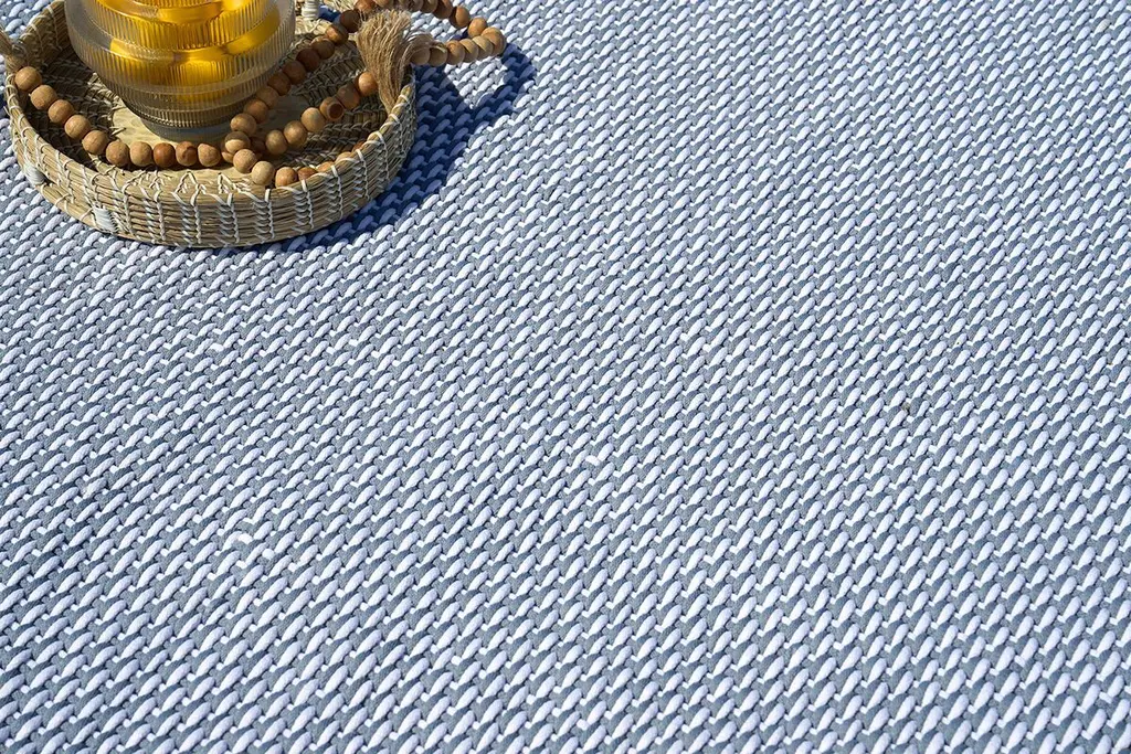 Crisp contrast of the durable woven cord-like rug will be right at home on a patio or indoor living space. The thick texture of the polypropylene fiber is a perfect choice for a space that needs the durability of a simple texture.