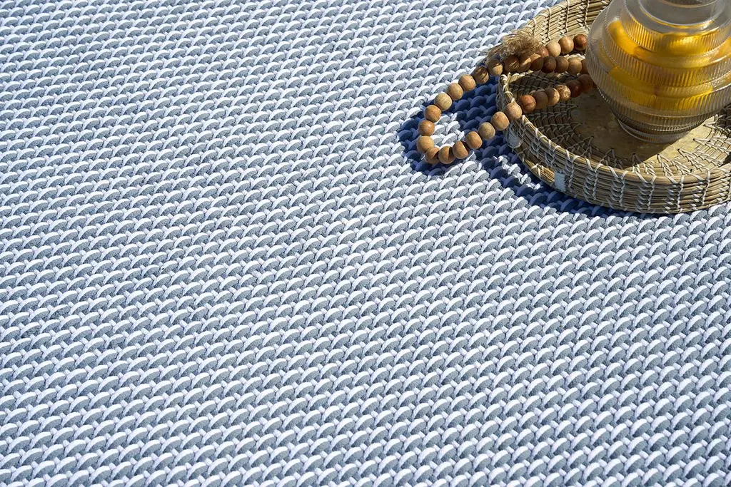 Crisp contrast of the durable woven cord-like rug will be right at home on a patio or indoor living space. The thick texture of the polypropylene fiber is a perfect choice for a space that needs the durability of a simple texture.