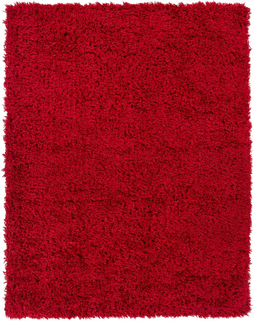 Collection: Porter Colors: Dark Red Construction: Hand Woven Material: 100% Polyester Pile: Plush Pile Pile Height: 1.18" Styles: Contemporary Backing: Canvas Made In: China Thickness: 2" Price Range: $$$$$ (Premium)