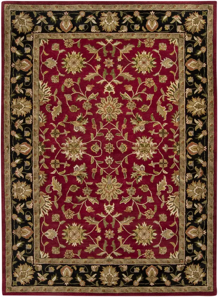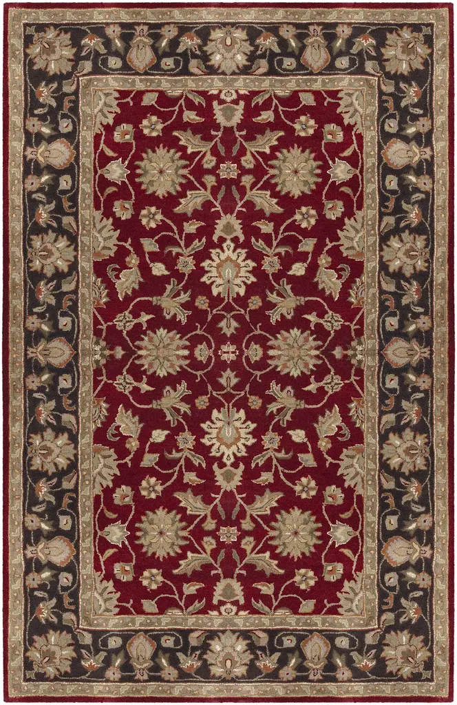 Collection: Porthcawl Colors: Black, Charcoal, Burgundy, Rust, Dark Red, Beige Construction: Hand Tufted Material: 100% Wool Pile: Medium Pile Pile Height: 0.5" Styles: Traditional Backing: Canvas Made In: India Thickness: 0.7" Price Range: $$$$$ (Affordable)