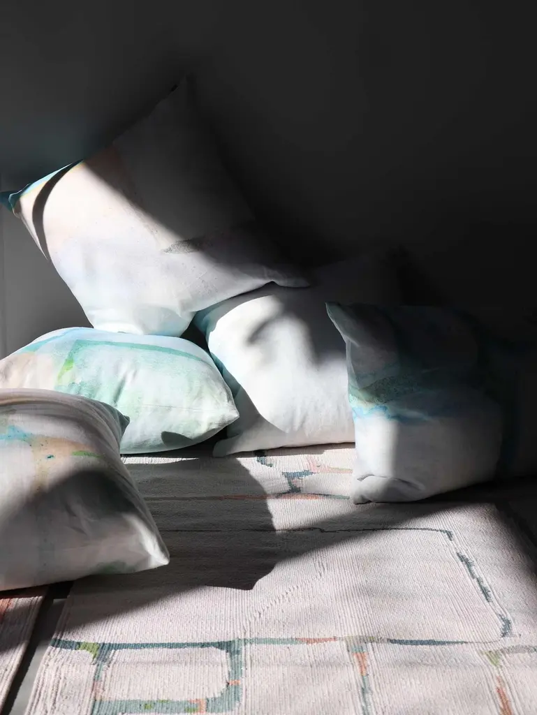 Portico Multi Solid Flatweave Rug by EskayelDimensions: D 8' x H 10'Pile Height: 4 mm pile, 3mm loop.Materials: New Zealand wool.While we do have a select number of rugs listed in stock, most are made to order and can be customized in various sizes. Eskayel is a New York-based textile design studio that weaves fine art with exacting craftsmanship. Dedicated to sustainable innovation and lasting beauty, it treats all environments conscientiously. Each of Eskayel’s one-of-a-kind designs originates from a painting inspired by nature or travel and created by studio founder Shanan Campanaro. Using eco-friendly methods, including water-based pigment ink, regional production and sustainably sourced materials, Eskayel evolves these artworks into hand-tied rugs, wall coverings, home linens, fabrics, furnishings, accessories and more. Working with trusted, transparent production partners, the studio makes each item to order to eliminate stock waste and ensure superior quality.Eskayel donates a percent of its total sales to environmental organizations, specifically: Union of Concerned Scientists, Mission Blue, 5Gyres, Sea Shepherd Conservation Society, Surfrider Foundation, Greenpeace and Vital Action Project.