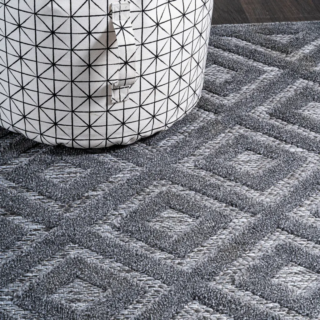 Portmany Neutral Diamond Trellis Indoor/outdoor Dark Gray 2'x8' Area Rug