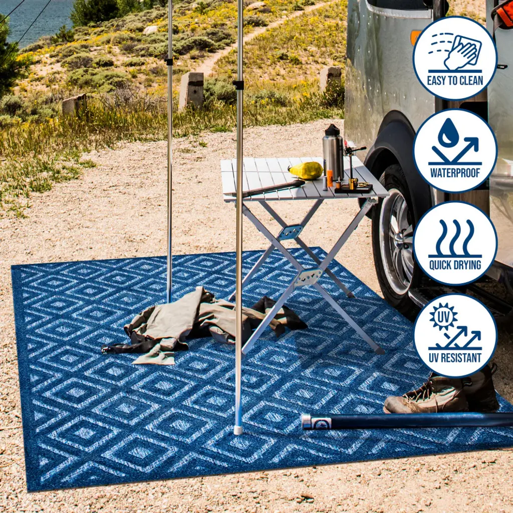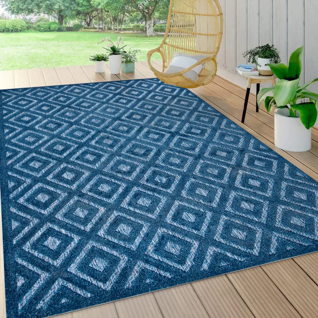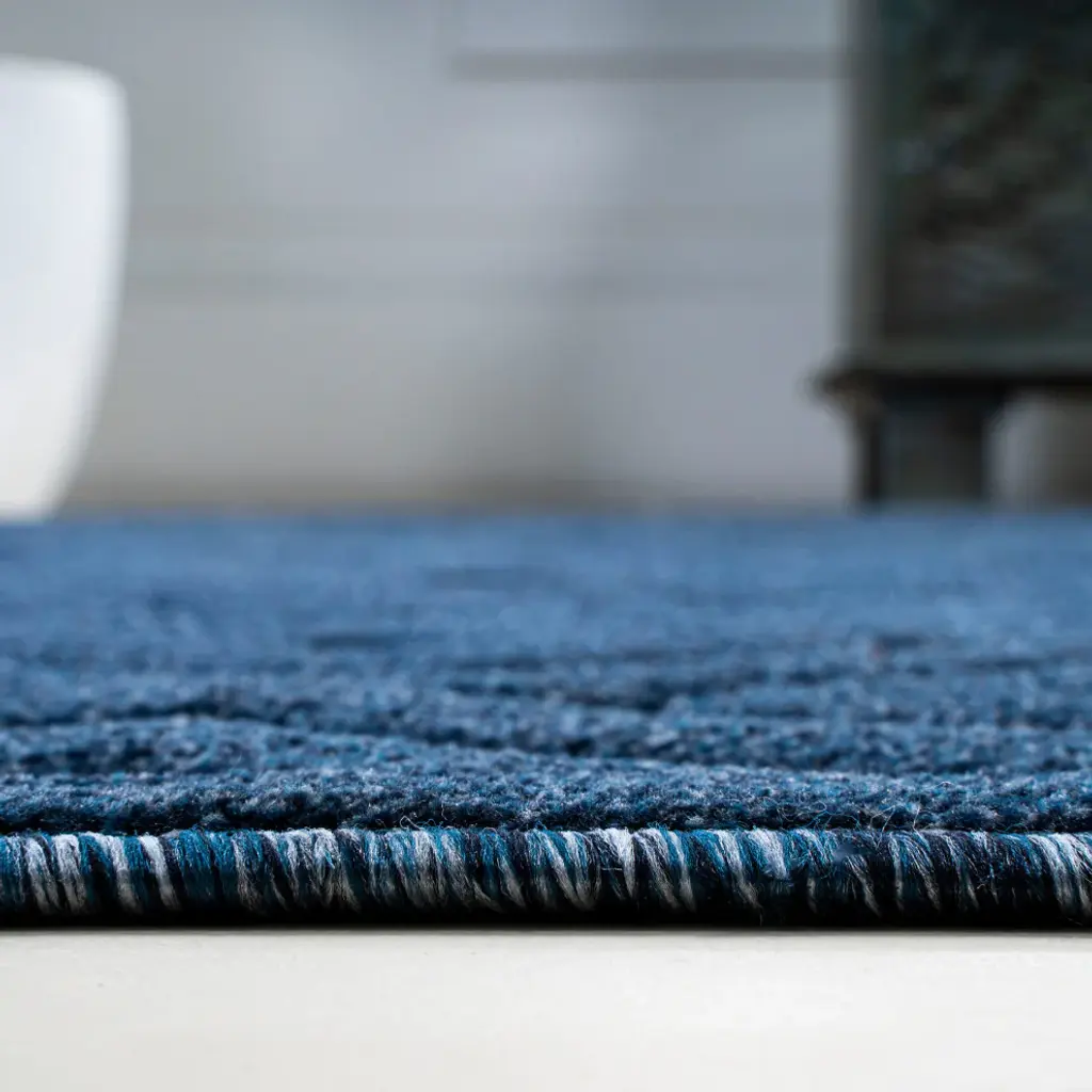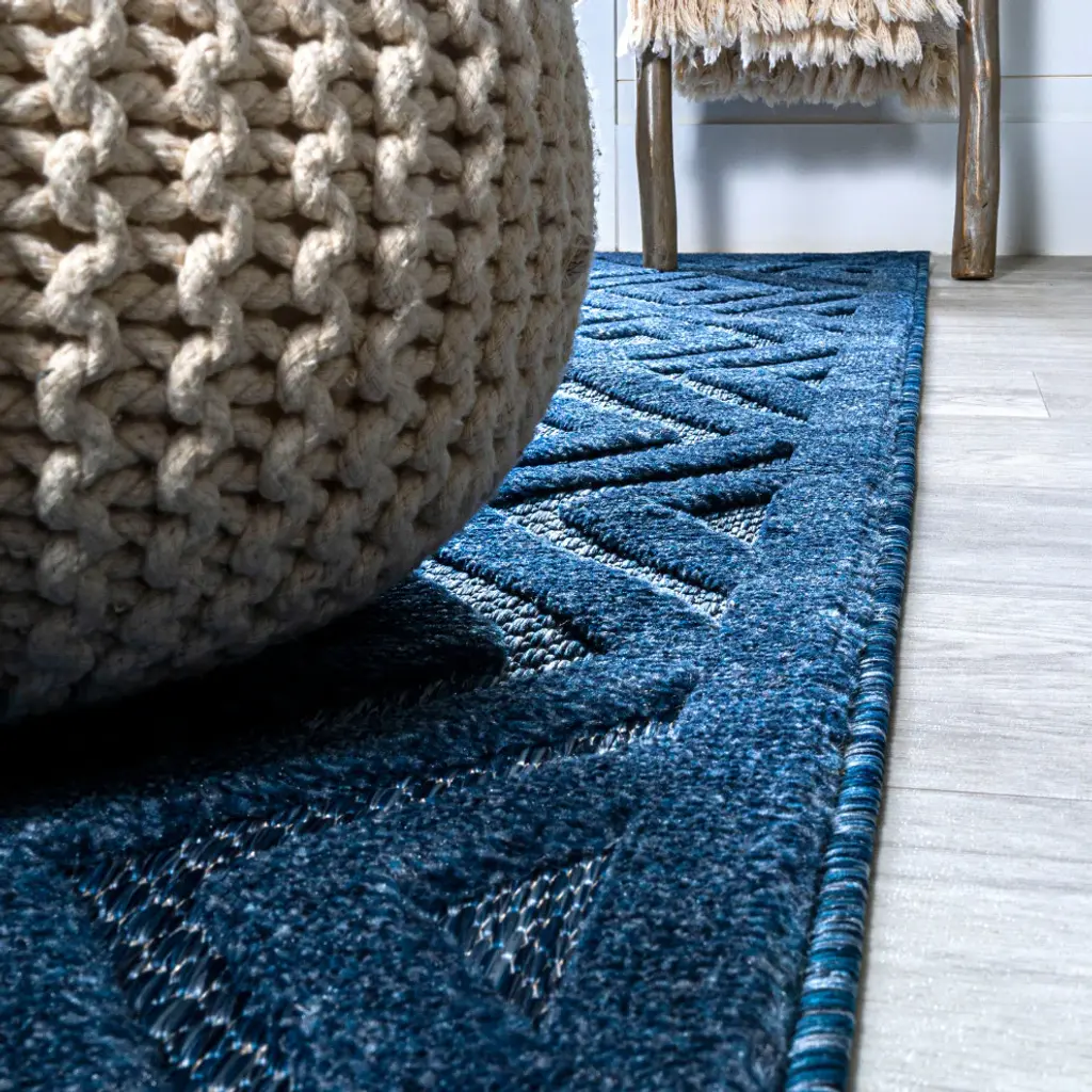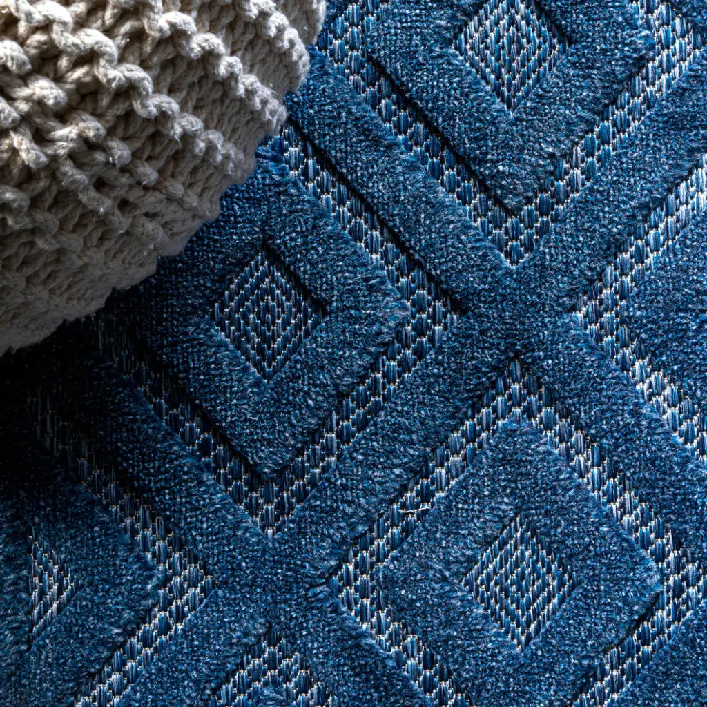 Inspired by traditional Mediterranean tile floors, this neutral indoor/outdoor rug adds subtle, elegant pattern to your porch, patio or sunroom. Mingled navy and denim threads give the geometric pattern a vintage feel that''s perfect for an entry, kitchen, hallway, living room or bedroom. The pet-friendly and kid-proof low pile design makes it easy to clean, and perfect for the modern beach house.Features:• Power loomed in a low pile that''s soft and durable, with a latex backing for added stability• Woven in shades of navy with mingled threads for a handmade effect• Made from easy-care polypropylene - just sweep, vacuum or hose down with mild soap and water• 100% Polypropylene• No backing, use of rug pad is recommended (sold separately)• Power Loomed in Turkey• Actual Dimension: 5 ft. 3 in. x 7 ft. 7 in.• Color: Navy• Thickness measures: 0.43 in.• Available in multiple sizes and/or colorsRug Care:• Vacuum regularly and spot clean as needed; avoid direct and continuous exposure to sunlight; use brushless vacuum; remove spills immediately; if liquid, blot with clean, undyed cloth by pressing firmly around the spill to absorb as much as possible; for hard to remove stains, professional rug cleaning is recommended; store in a dry, well ventilated area and rotate for consistent wear• Packing and shipping may cause temporary creases in rugs, which will flatten out after a week on the floor; to expedite the process, try back-rolling your rug before laying it down, and then allow ample time for the remaining creases to relax• Please Note: Due to differences in monitors, some rug colors may vary slightly. Lengths and widths may vary from the published dimensions. Patterns may vary slightly according to shape and size selected.About us:Style your floors with JONATHAN Y. By combining fine craftsmanship and design, this New York creative studio is bringing fashion to your floors. The collection mixes sustainable organic materials, vibrant colors and trend worthy styles to create JONATHAN Y''s distinctive catalog of rugs.