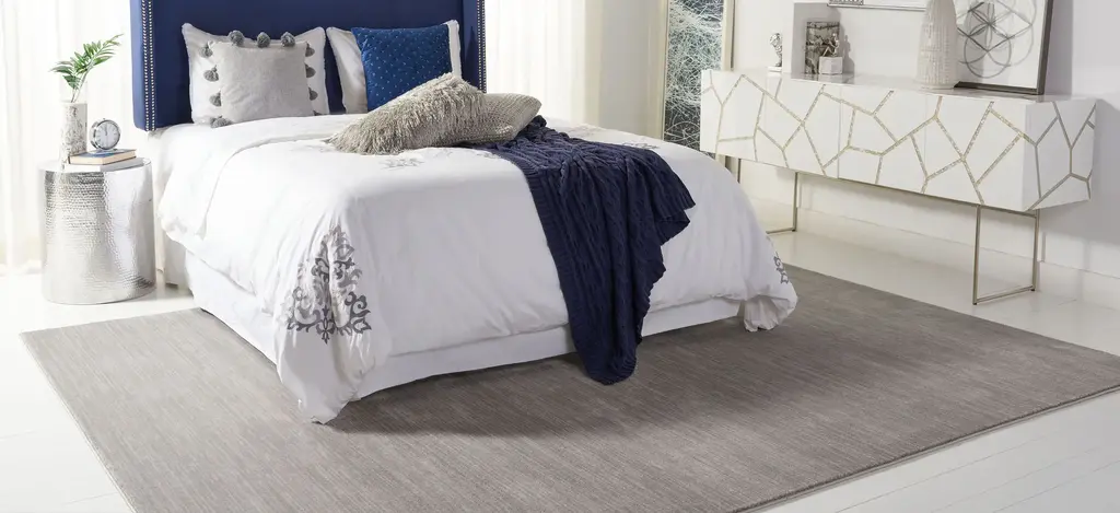 The Posey Area Rug is a soft textured, tonal area rug inspired by the organic energy of today's metro-chic decor, with shimmering hues set against a veiled white background casting a radiant display. It is machine loomed using supple synthetic yarns for a comforting feel underfoot and vivid colors that last.