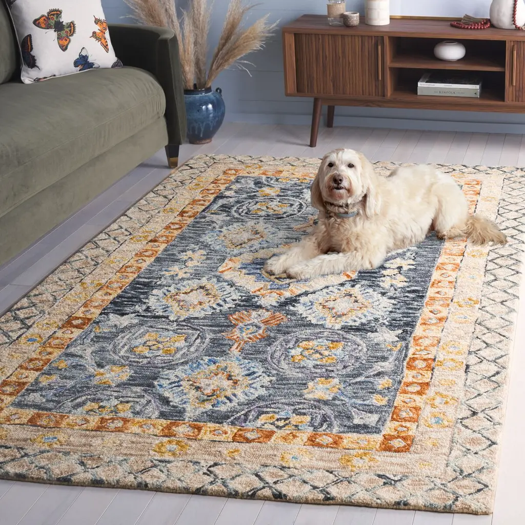 Introducing our exquisite hand-tufted area rug, a perfect blend of timeless style and luxurious comfort for your home. Crafted with precision in India, this small rectangle rug measures 4 feet by 6 feet and features a plush 3/8 inch pile height that invites you to step on and experience the softness underfoot. This area rug showcases an elegant ivory and beige color palette that creates a serene and inviting atmosphere in any room. The intricate rug pattern displayed in the image captures a harmonious mix of traditional motifs, which include symmetrical floral designs and ornate geometric shapes, alongside a sophisticated border that adds a definitive edge to the aesthetic. Made from a superior blend of 80% wool and 20% cotton, this rug promises both warmth and durability, making it an ideal choice for areas with high foot traffic. The hand-tufted construction not only ensures a dense and thick pile but also lends the rug a hand-crafted look that's rich in detail and full of character. Transform your living space with this stunning rug that effortlessly combines old-world charm with modern craftsmanship to bring beauty and elegance to your floors.
