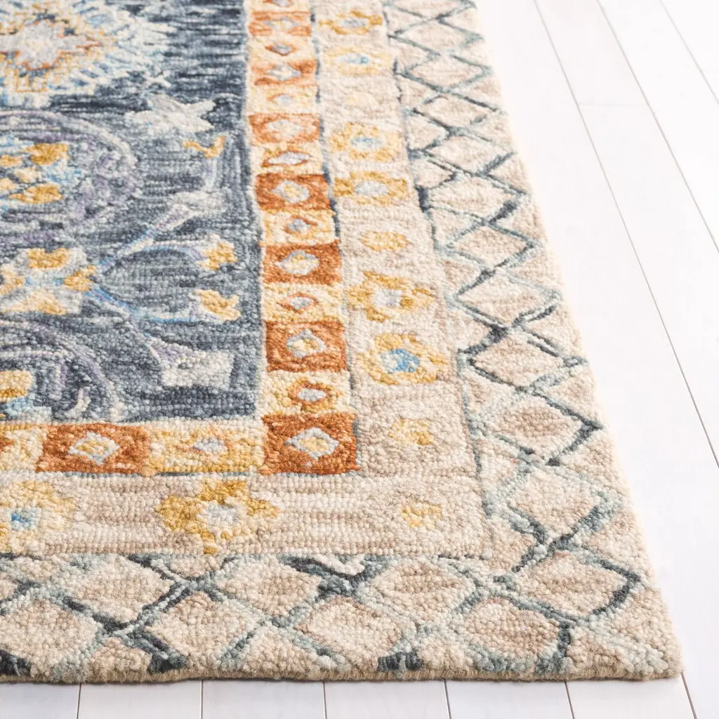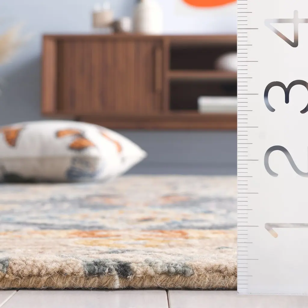 Introducing our exquisite hand-tufted area rug, a perfect blend of timeless style and luxurious comfort for your home. Crafted with precision in India, this small rectangle rug measures 4 feet by 6 feet and features a plush 3/8 inch pile height that invites you to step on and experience the softness underfoot. This area rug showcases an elegant ivory and beige color palette that creates a serene and inviting atmosphere in any room. The intricate rug pattern displayed in the image captures a harmonious mix of traditional motifs, which include symmetrical floral designs and ornate geometric shapes, alongside a sophisticated border that adds a definitive edge to the aesthetic. Made from a superior blend of 80% wool and 20% cotton, this rug promises both warmth and durability, making it an ideal choice for areas with high foot traffic. The hand-tufted construction not only ensures a dense and thick pile but also lends the rug a hand-crafted look that's rich in detail and full of character. Transform your living space with this stunning rug that effortlessly combines old-world charm with modern craftsmanship to bring beauty and elegance to your floors.