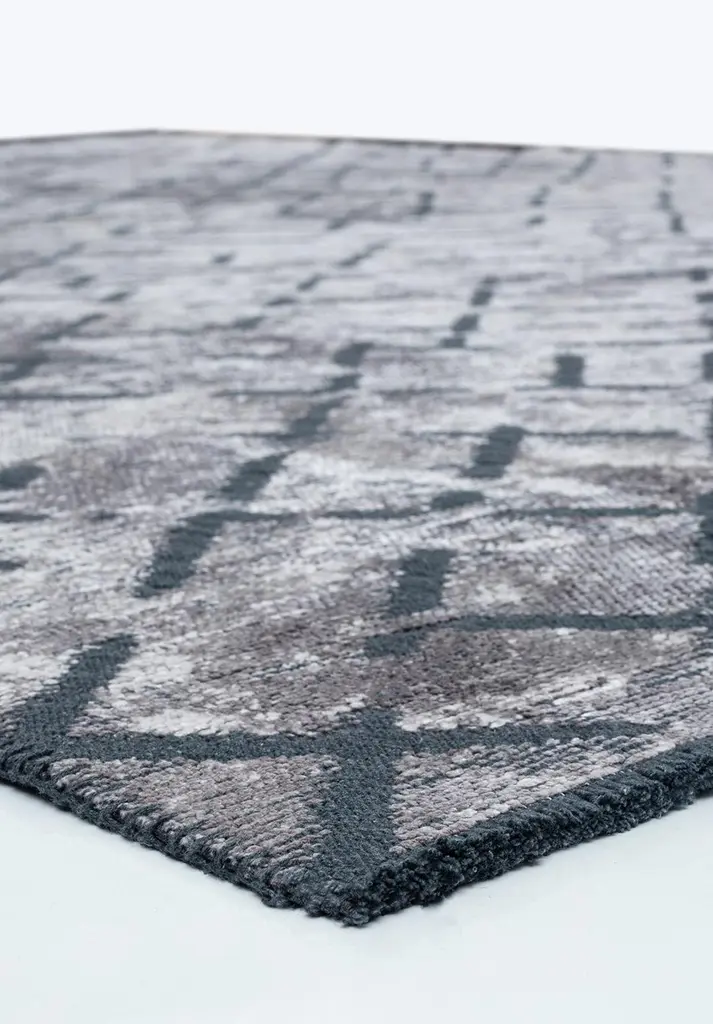Post Modern Silver Abstract Allover Pattern Rug With Or Without Fringe