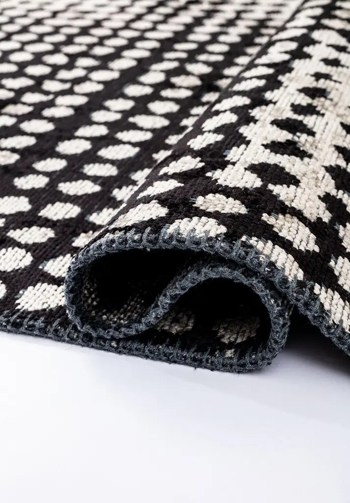 Postmodern Moroccan Berber Pattern Black And Silver Beige Abstract Rug No Fringe