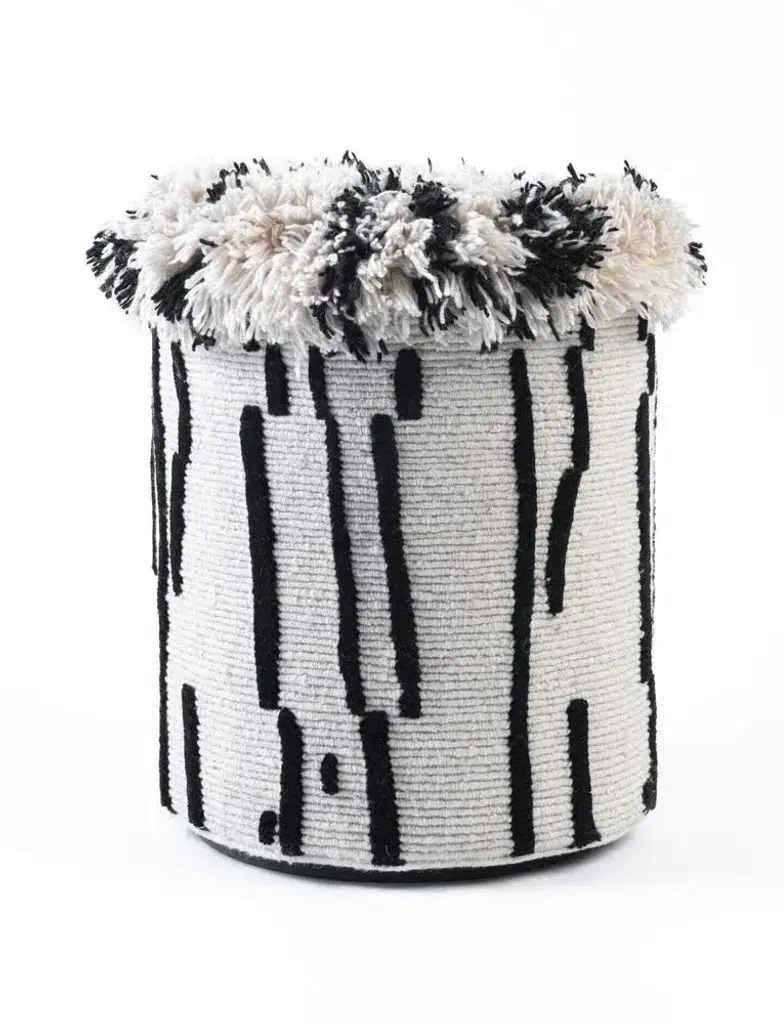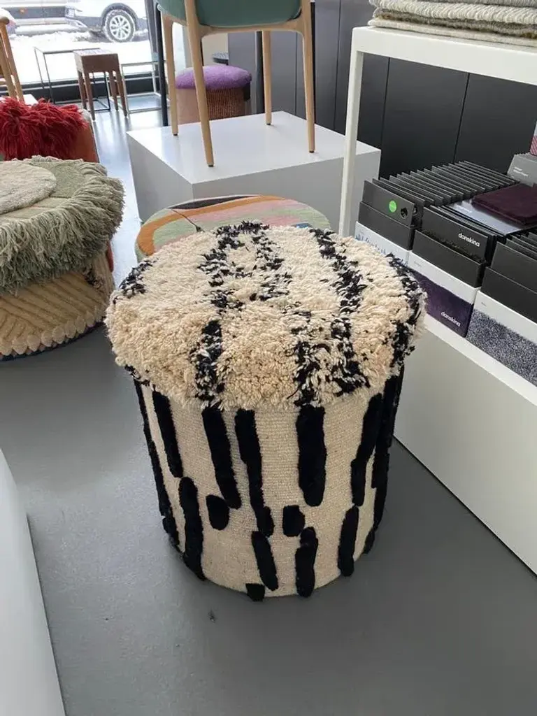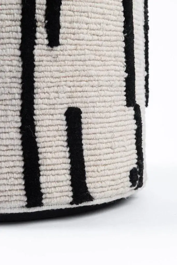 Pouf Charaktere Cuno by Lyk Rug Dimensions: Ø 46 x H 60 cm. Materials: 100% tibetan highland-wool, new pure hand-combed and hand-spun wool, natural vegetable-dyed wool, 100 knots per square inch. Hand-knotted, manual techniques and pot-dying makes every Lyk Rug unique, slight variations in size & tone is possible.