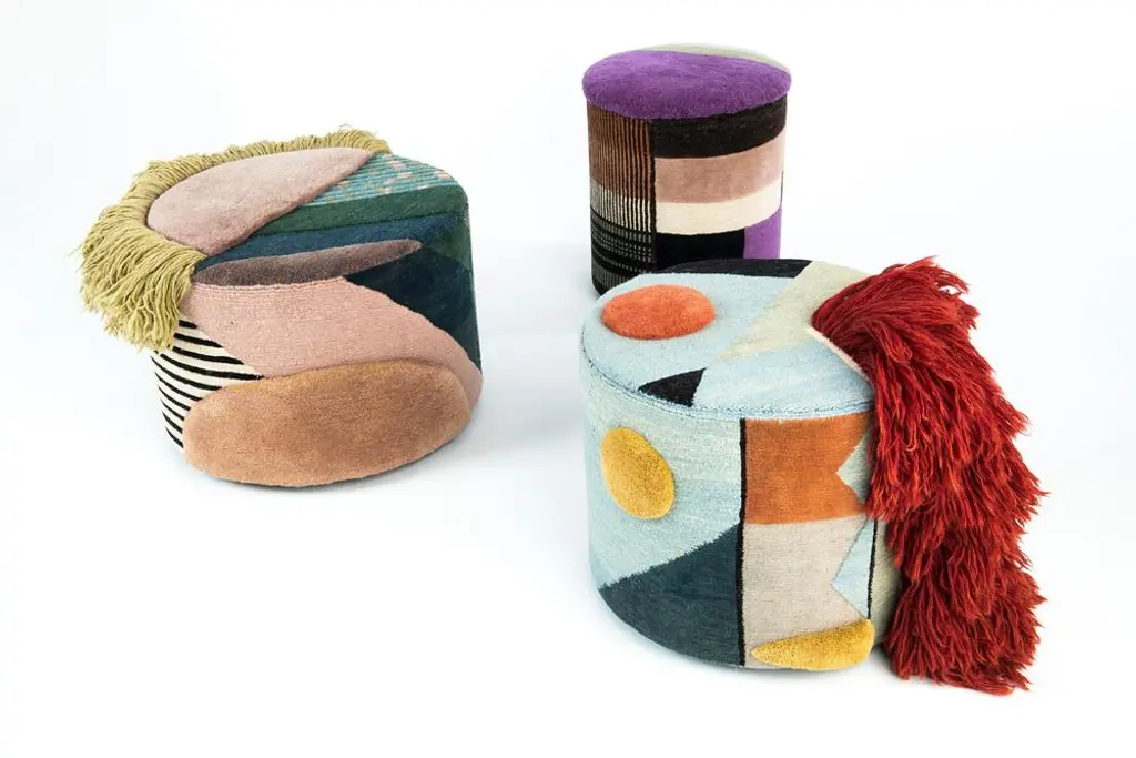 Set of 3 poufs charaktere fred, massimiliano and colette by lyk rug dimensions: fred: ø 44 x h 52 cm massimiliano: ø 53 x h 47 cm colette: ø 62 x h 47 cm. Materials: 100% tibetan highland-wool, new pure hand-combed and hand-spun wool, natural vegetable-dyed wool, 100 knots per square inch. Hand-knotted, manual techniques and pot-dying makes every lyk rug unique, slight variations in size & tone is possible. Please contact us. Mareike lienau designs rug objects and unique rugs for her label lyk carpet, which are hand knotted in nepal. Her mission is to reinterpret craft and to bring it closer to young people. The superficial functionality of the she tries to radically question the superficial functionality of the carpet. Away from the rectangle mareike wants to positive, lustful and imaginative the form & the craft, the material new, unseen and exaggerated show.