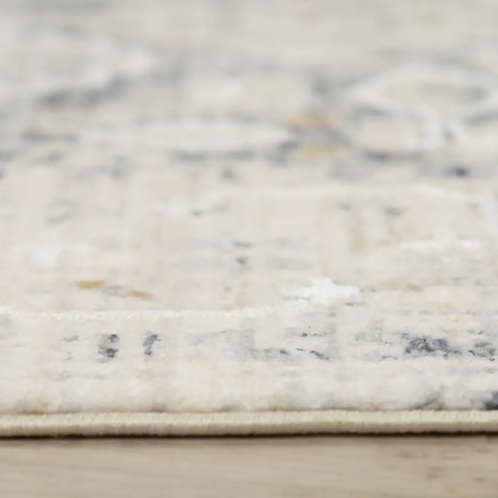 Add a layer of warmth and style to your space with the Iconic Persian-style rug. This floor piece makes a statement with the classic contemporary and transitional style in shades of Ivory and Blue. It was meticulously power-loomed from 85-percent polyester and 15-percent polypropylene which offers it a unique charm and great comfortability. Its expertly hand tufted low and high pile gives it dimension and texture.