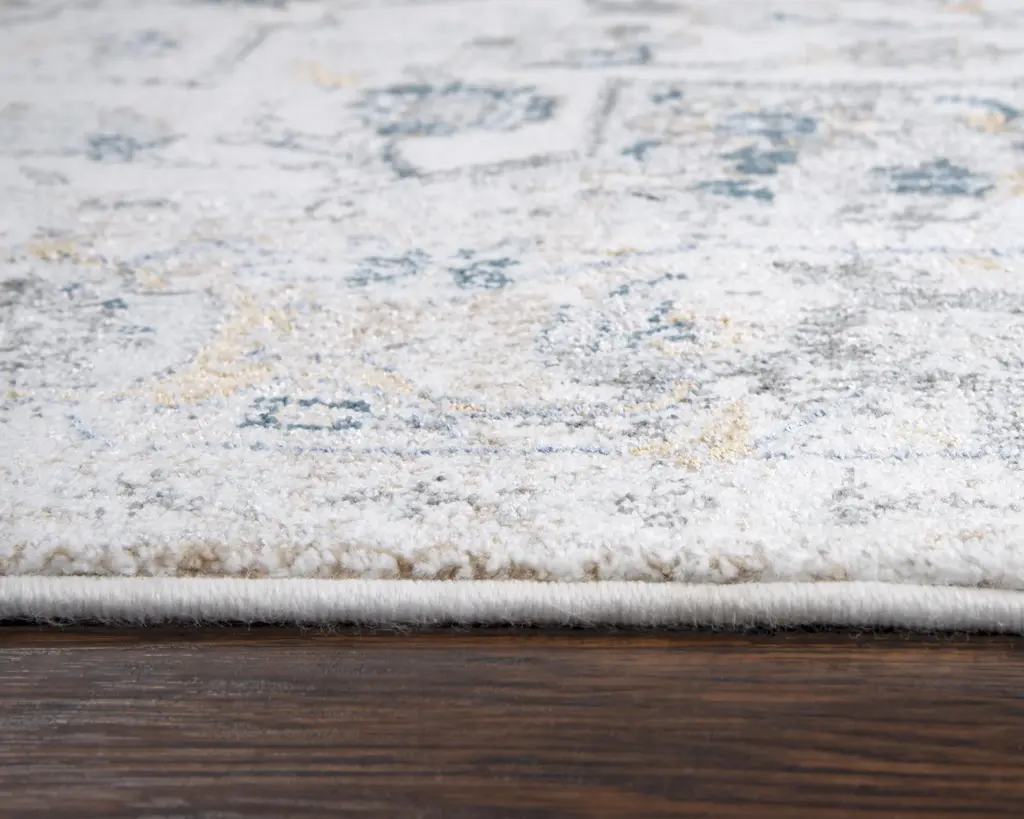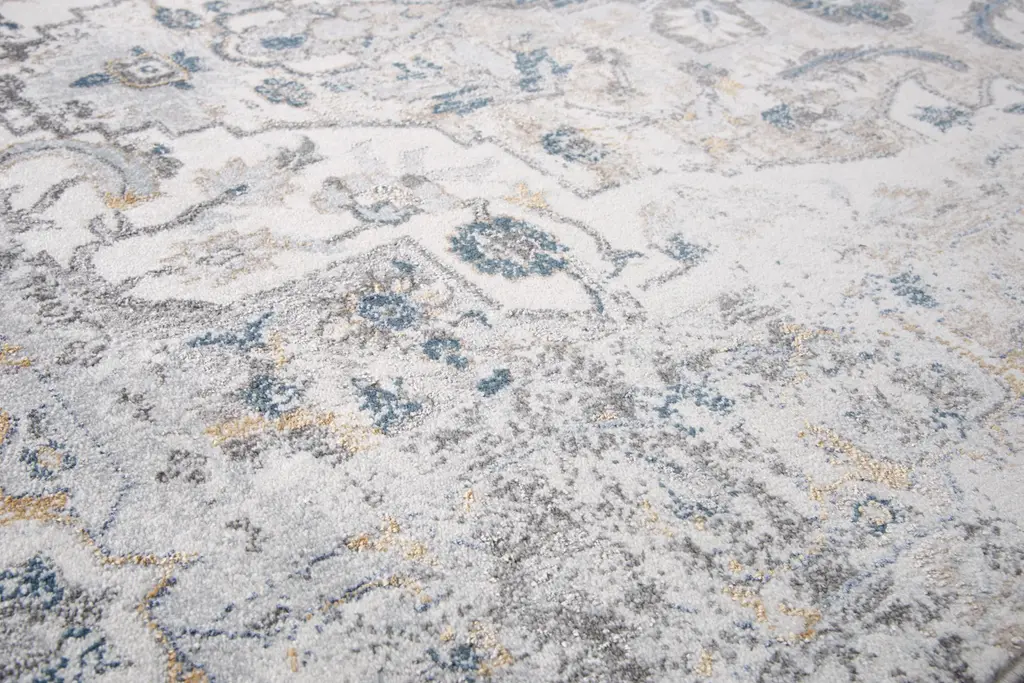 The Bristol Rug boasts an enticing pattern that transports you back in time with its cozy Blues, Grays, and Gold floral medallions peeking out of an Ivory field. This vintage look is achieved through the use of durable fibers, including 85-percent polypropylene and 15-percent polyester, ensuring long wear and a soft nap. Adding this rug to your transitional style home decor will provide years of comfort and charm.