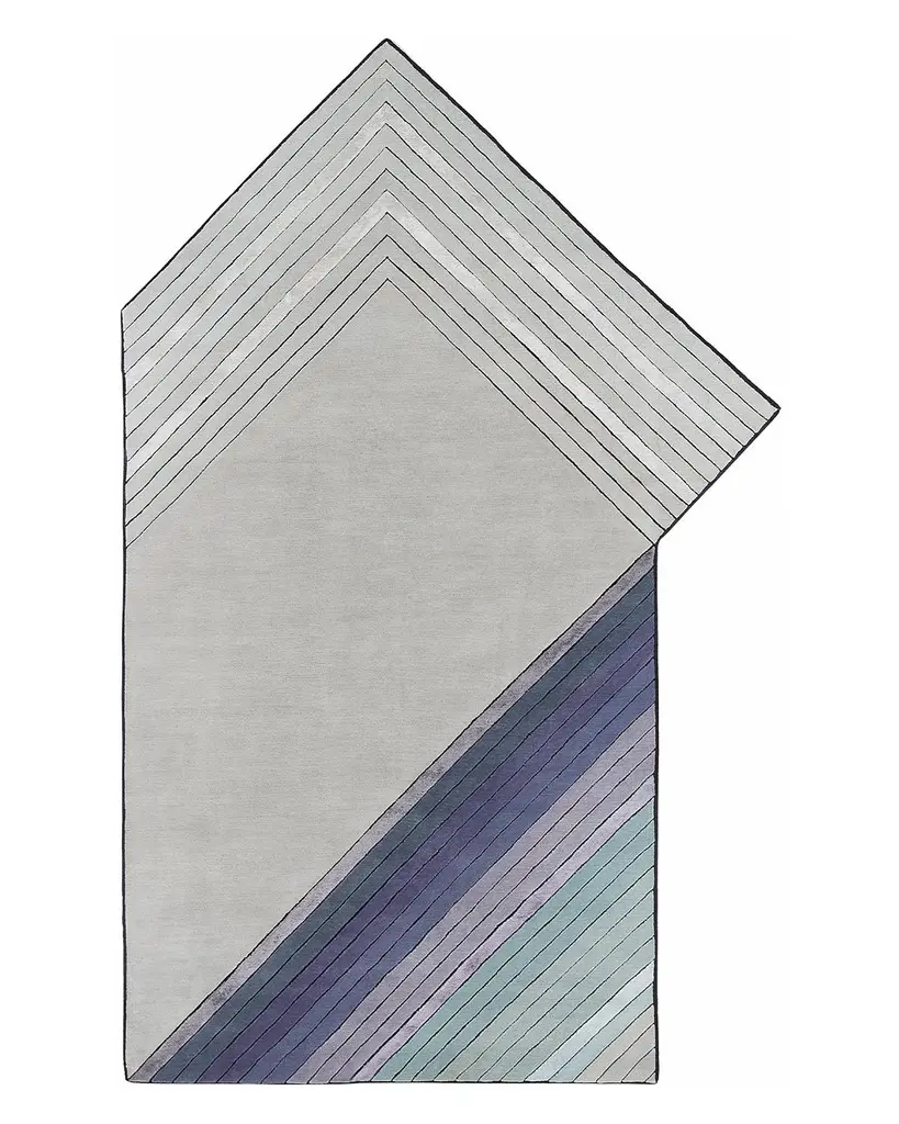 PPF2 Papiroflexia Rug by MohebbanDimensions: W 280 x L 180 cmMaterials: Wool.The Papiroflexia collection is born from the parallelism between representation and reality, between plans and three-dimensionality. Starting from traditional rectangular shapes, these rugs develop through different types of folds in orthogonal versions or with more complex shapes, inspired by the art of “Origami” that led the Spanish designer Miguel Reguero to the discovery of new geometries. Hand-knotted rugs in wool and viscose with variations in texture, colors and shades aimed at creating amazement in the observer and decorating contemporary living.The carpet is not a simple furnishing accessory: it is a culture that has been handed down for generations, with wise gestures and refined techniques. With its shape it defines a physical but also spiritual space, and through the knots it tells an ancient and contemporary story, contributing to enriching the private universe of its owner with beauty and uniqueness. A responsibility not to be underestimated, of which the Mohebban family is fully aware. Since the early 1970s, Mohebban has been producing carpets of the highest quality, without forgetting these values and the profound meaning of a thousand-year-old art. From Iran, the family's place of origin, to Milan, the company's headquarters for more than half a century, passing through Turkey, India and Pakistan where production takes place today: for three generations an international vision, in which tradition, attention to detail, ancient gestures find their place, always accompanied by a contemporary look, attentive to design and the challenges of a dynamic and constantly evolving present.