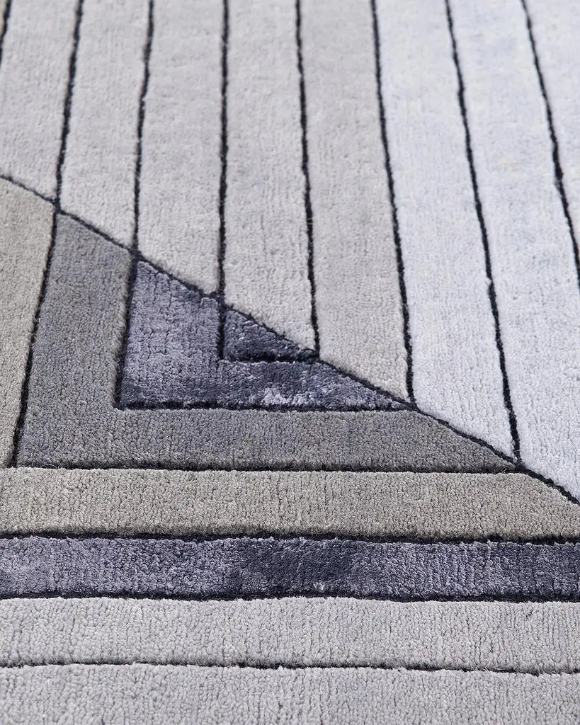 PPF3 Papiroflexia Rug by MohebbanDimensions: W 250 x L 250 cmMaterials: Wool.The Papiroflexia collection is born from the parallelism between representation and reality, between plans and three-dimensionality. Starting from traditional rectangular shapes, these rugs develop through different types of folds in orthogonal versions or with more complex shapes, inspired by the art of “Origami” that led the Spanish designer Miguel Reguero to the discovery of new geometries. Hand-knotted rugs in wool and viscose with variations in texture, colors and shades aimed at creating amazement in the observer and decorating contemporary living.The carpet is not a simple furnishing accessory: it is a culture that has been handed down for generations, with wise gestures and refined techniques. With its shape it defines a physical but also spiritual space, and through the knots it tells an ancient and contemporary story, contributing to enriching the private universe of its owner with beauty and uniqueness. A responsibility not to be underestimated, of which the Mohebban family is fully aware. Since the early 1970s, Mohebban has been producing carpets of the highest quality, without forgetting these values and the profound meaning of a thousand-year-old art. From Iran, the family's place of origin, to Milan, the company's headquarters for more than half a century, passing through Turkey, India and Pakistan where production takes place today: for three generations an international vision, in which tradition, attention to detail, ancient gestures find their place, always accompanied by a contemporary look, attentive to design and the challenges of a dynamic and constantly evolving present.