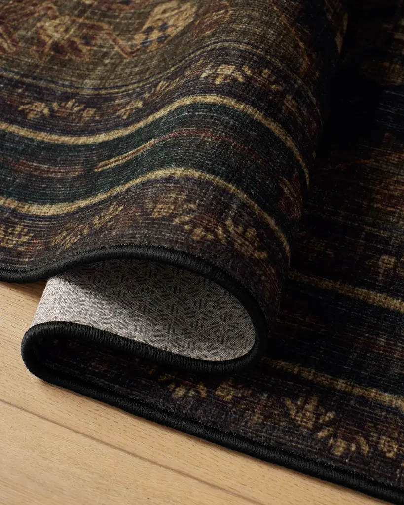 Meet your most decadent room accent yet. The Pradera Soft Black & Brown Rug is filled with warm, dark chocolate brown tones with hints of red. Inspired by antique Persian rugs from the Zagros Mountains, this rug manages to stand out while complementing any space, echoing the interpretation of the natural world. Water-resistant, stain-resistant, and machine-washable. Colors may vary by device and lighting.